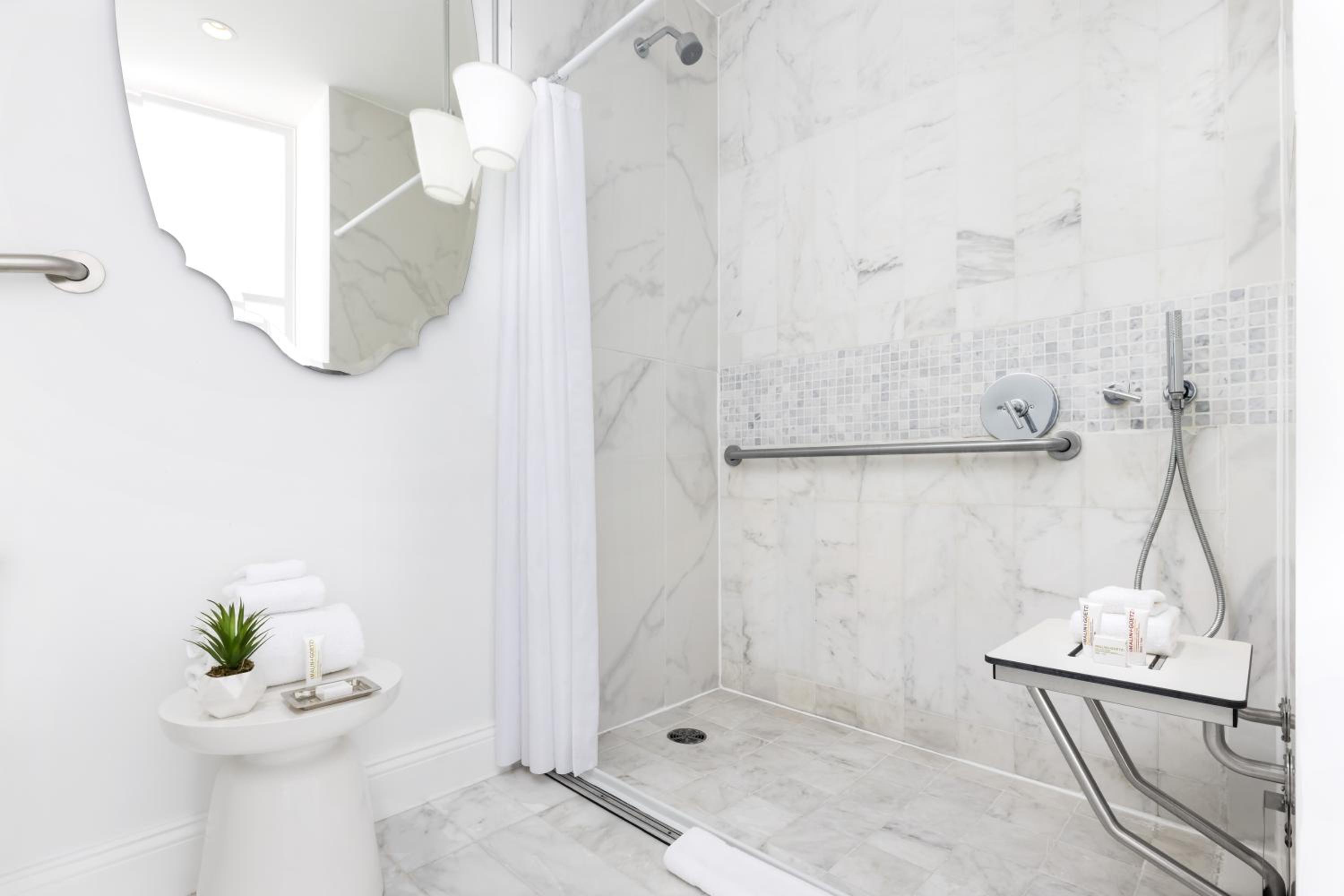 Unique Amenities: Indulge in CO & Billow Bath Products, enjoy entertainment on a Flat-screen HDTV, and relax in comfort with Down bedding in rooms featuring stunning floor-to-ceiling windows.