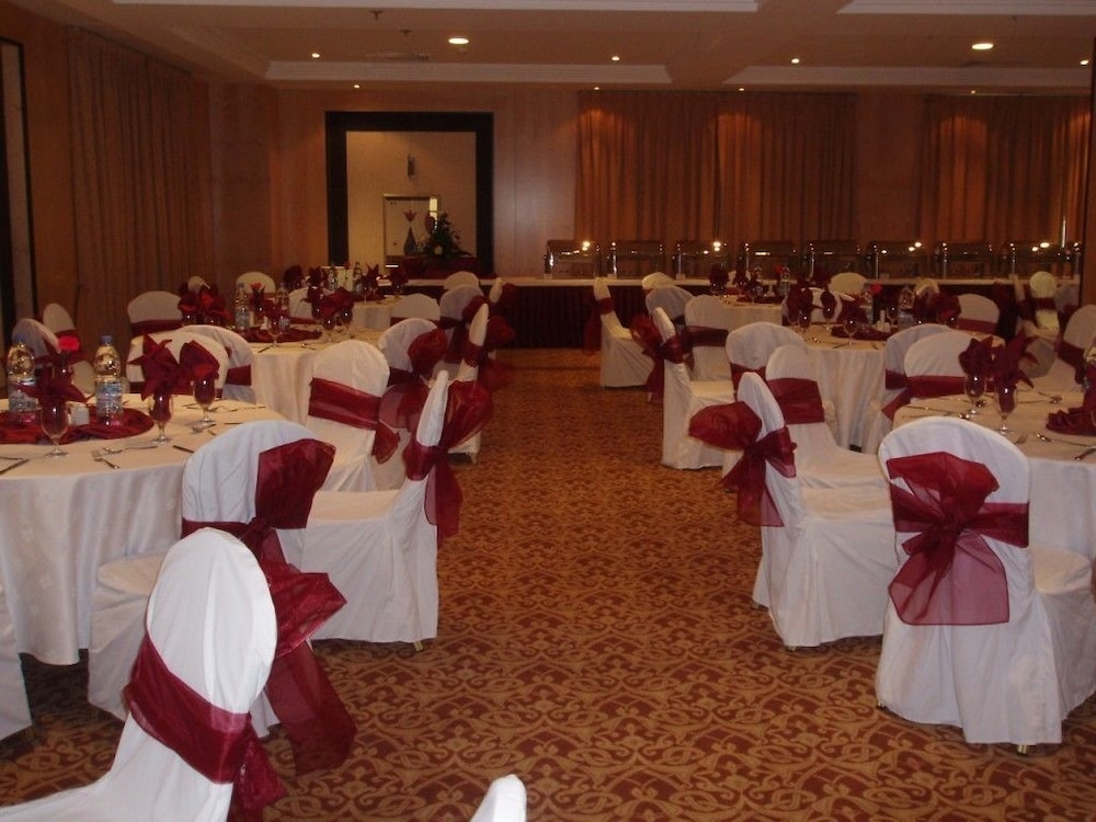 The hotel is inside a sports arena. There was no signage to signify that it was there. I had to ask a bus driver and he pointed me to the right place. The first night the TV from the room next door was too loud. I complained to the staff and they had it turned down. Thanks. The second night was great. The third night they held a party in their banquet hall, which was immediately below my room. I could hear the music and the voices on the microphone below. The party was booked to 1 am. I complained about the noise and was moved to a different room. Although inconvenient, this was an acceptable solution, until the call to prayer from the mosque next door woke me up early in the morning. Although the staff was very helpful and responsive, I would never stay at this hotel again. Also, any voices from the hallway carried right into the room. This is not a good place to stay if you are a light sleeper, or need it to be quiet.