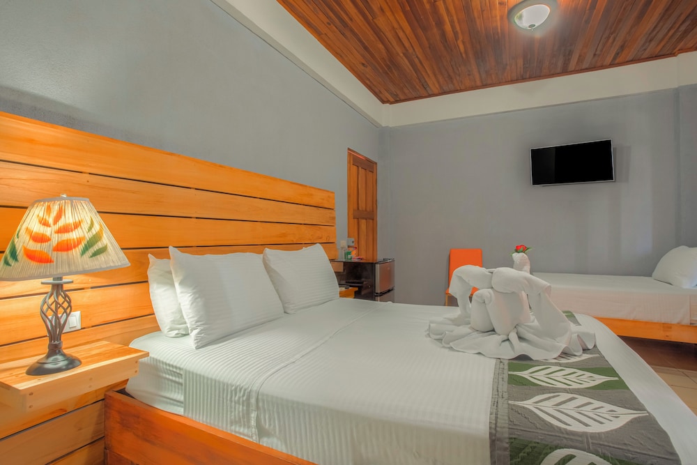 Recomiendo este hotel sin ninguna duda. Todos los empleados fueron amables, serviciales y dispuestos a ayudar. Karen y Daniel hicieron que nuestra experiencia fuera más de lo esperado con sus atenciones. Nuestra habitación para cuatro personas fue cómoda, siempre limpia y con todo lo esencial (aire acondicionado, máquina de café, neverita con refrigerios, toallas y artículos de higiene personal). El desayuno es buffet, variado y delicioso. Ofrece el tradicional gallo pinto, y a su vez tiene alternativas calientes y frias para el gusto de todos. La ubicación del hotel es perfecta para explorar la comunidad La Fortuna. Ubica en la vía principal de acceso al Volcán Arenal (donde en días despejados puedes observarlo) al costado de la Iglesia Católica. En el hotel puedes coordinar las diferentes actividades y excursiones que La Fortuna ofrece (hicimos varias y todas fueron espectaculares). El hotel cuenta con restaurante llamado Maria Bonita Steak House y una barra, Selva Negra Cocktail & Wine Bar. Tuve oportunidad de visitar ambos y fueron espectaculares, tanto en calidad, servicio y experiencia disfrutada. Para algo más ligero cuentan con La Ventanita de Maria Bonita, donde ofrece platos más ligeros igualmente ricos en ordenes para llevar. Este hotel superó todas mis expectativas en todos los aspectos y sin duda volvería a alojarme aquí.
