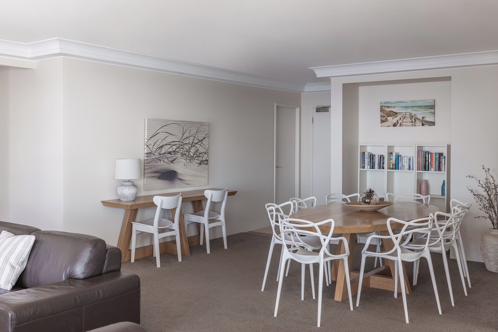 We had a fabulous 2 bedroom apartment with views to the beach and over the pool. A home away from home . Everything we needed was there . Close proximity to the tram at the Cypress st Station restaurants and shops. Very comfortable beds. Only thing I think could be improved is the cleanliness of the apartment Dust on skirting boards and edges of room . and behind bedside tables. Looks like nothing has been moved in order to clean properly for a little while. Shower screens not that clean .