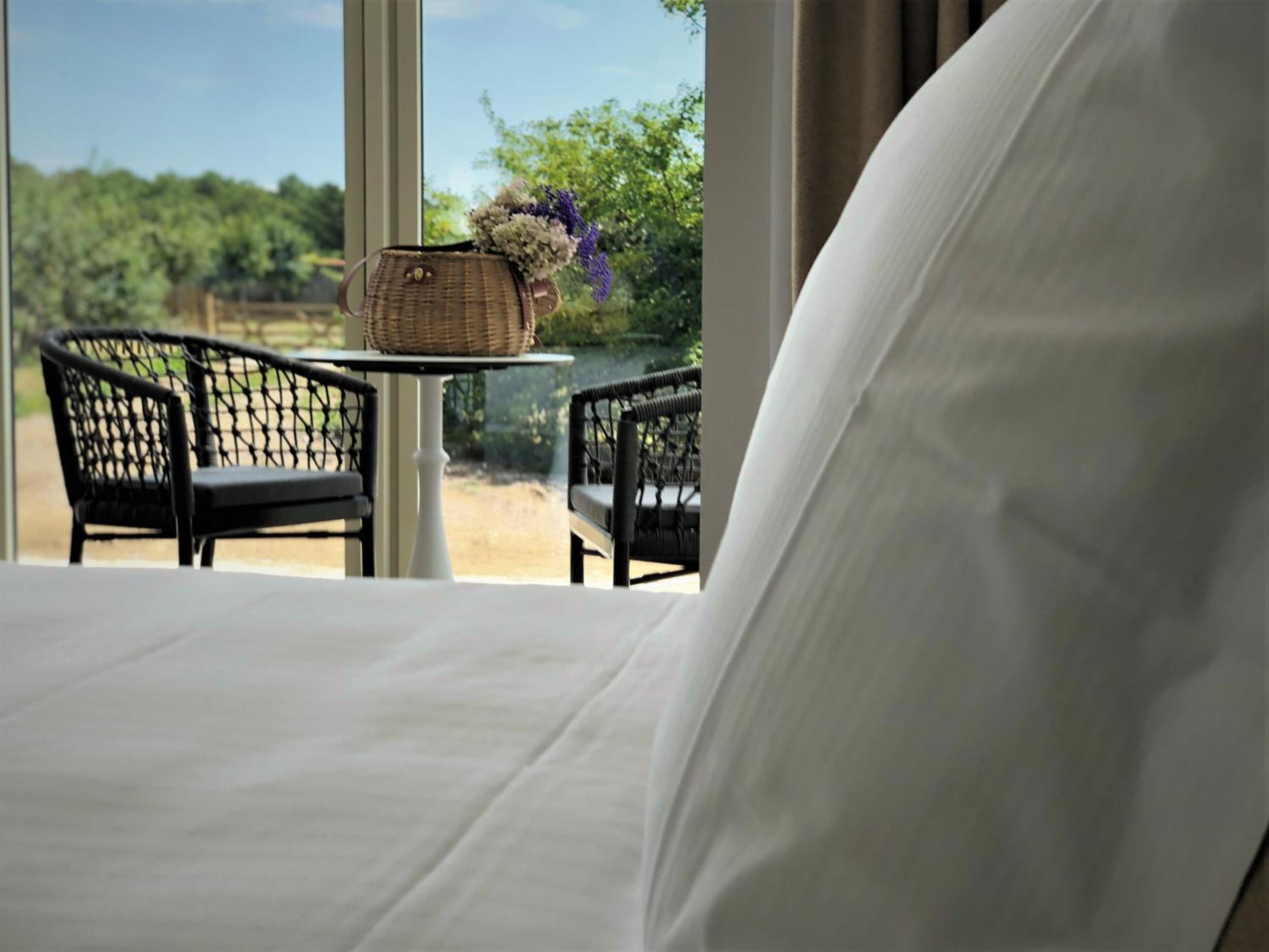 Serene Accommodations: The rooms at Eco-Domaine la Fontaine offer comfortable living spaces with en suite facilities and breathtaking views of the natural surroundings.
