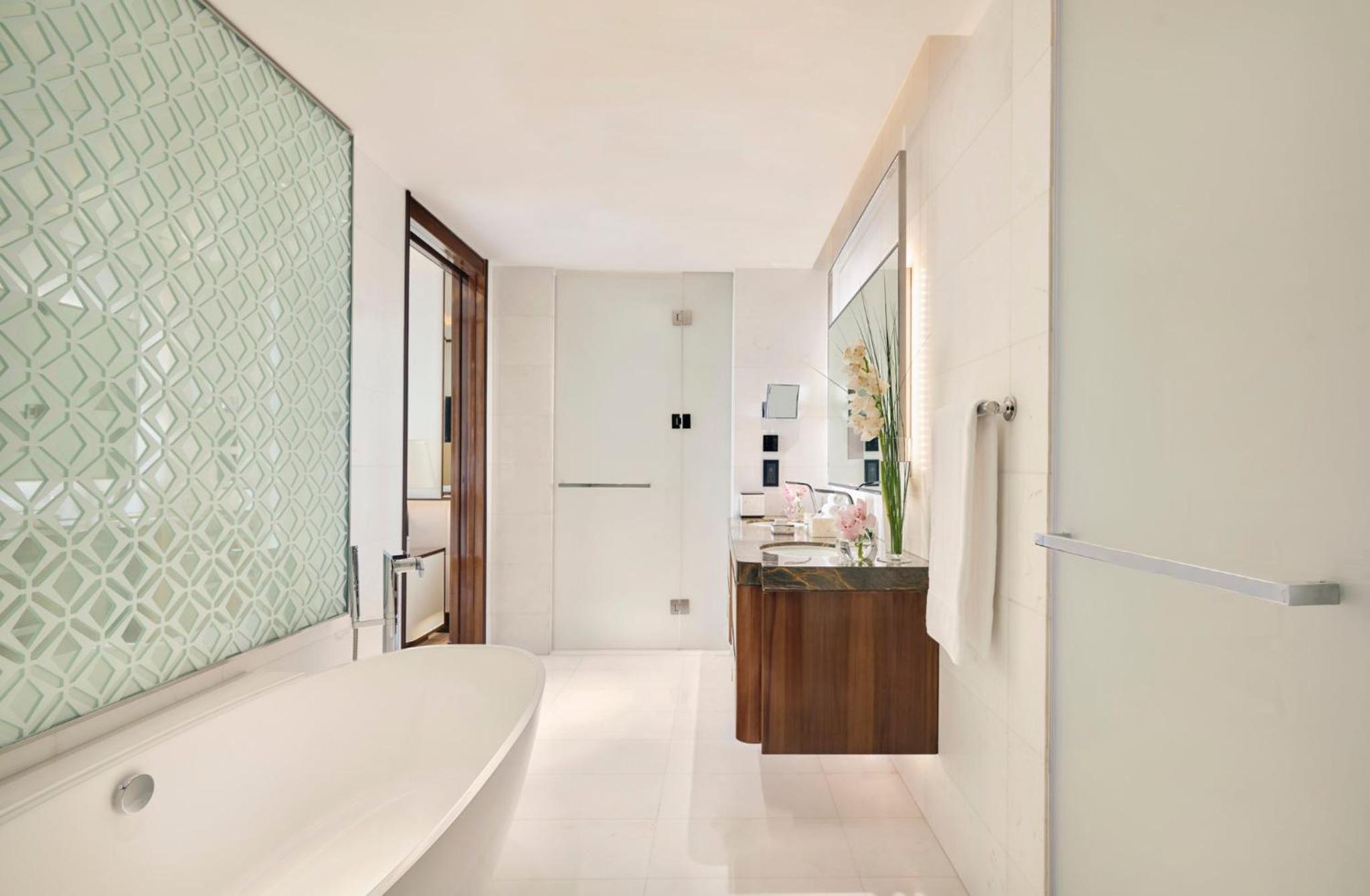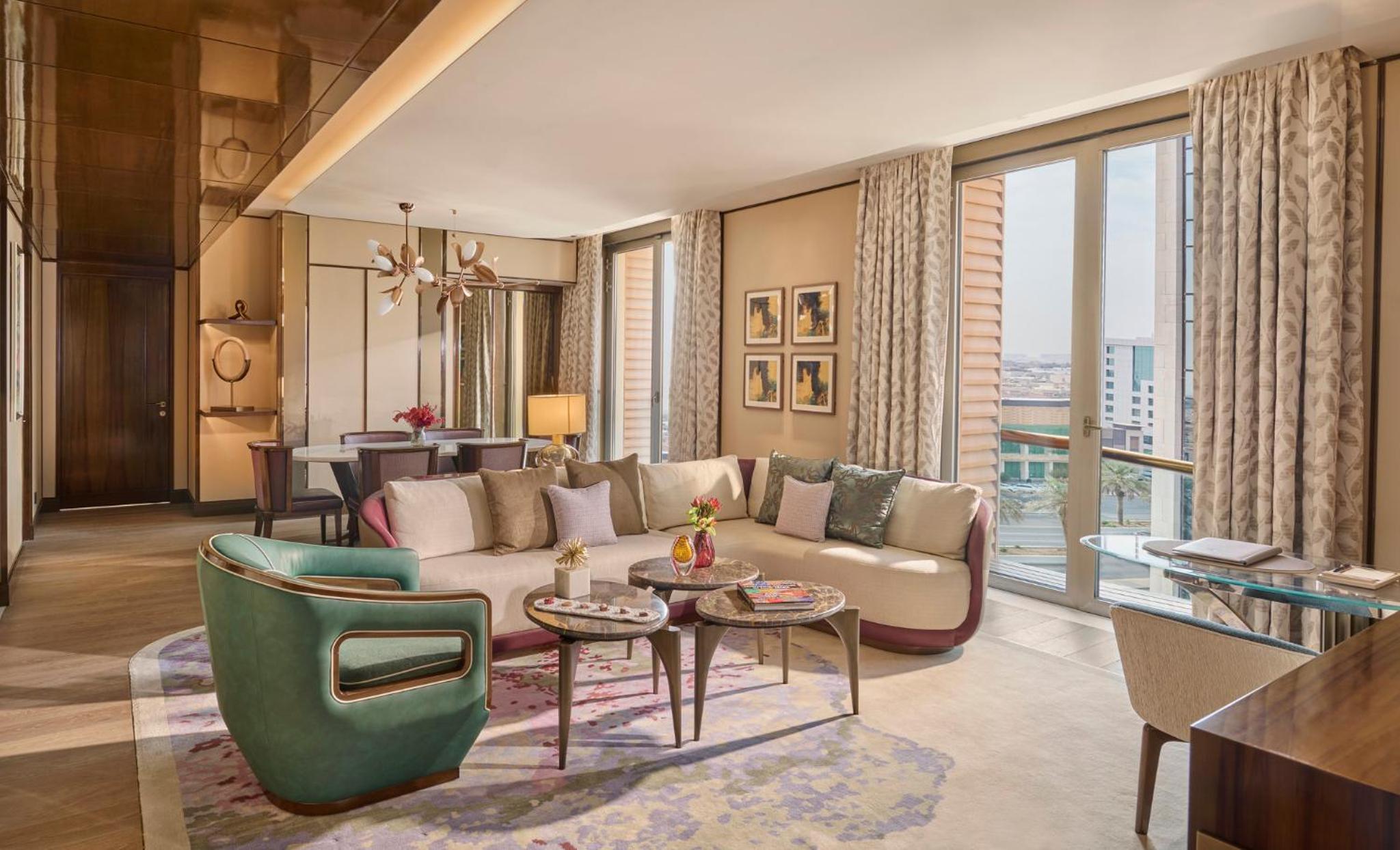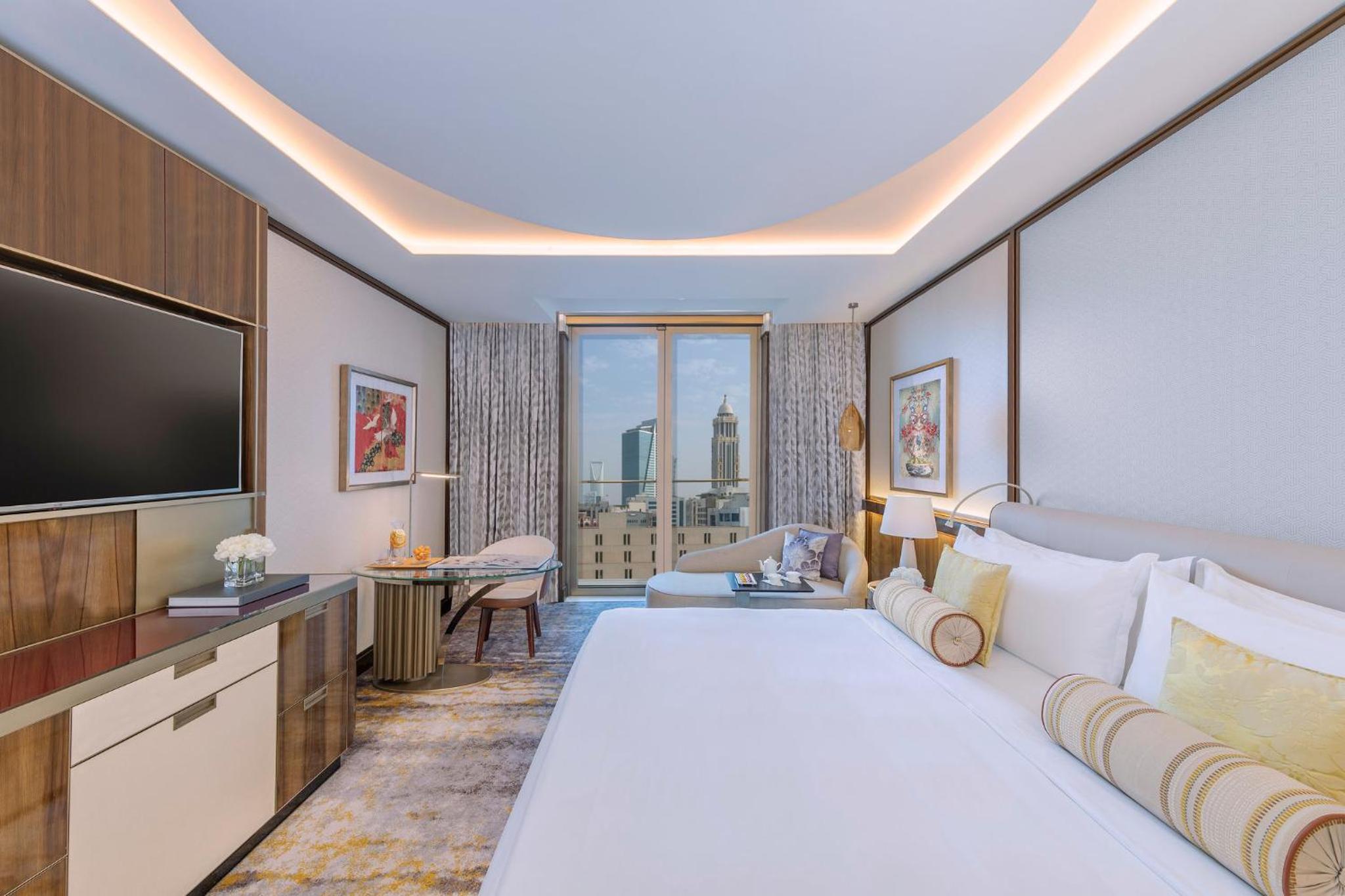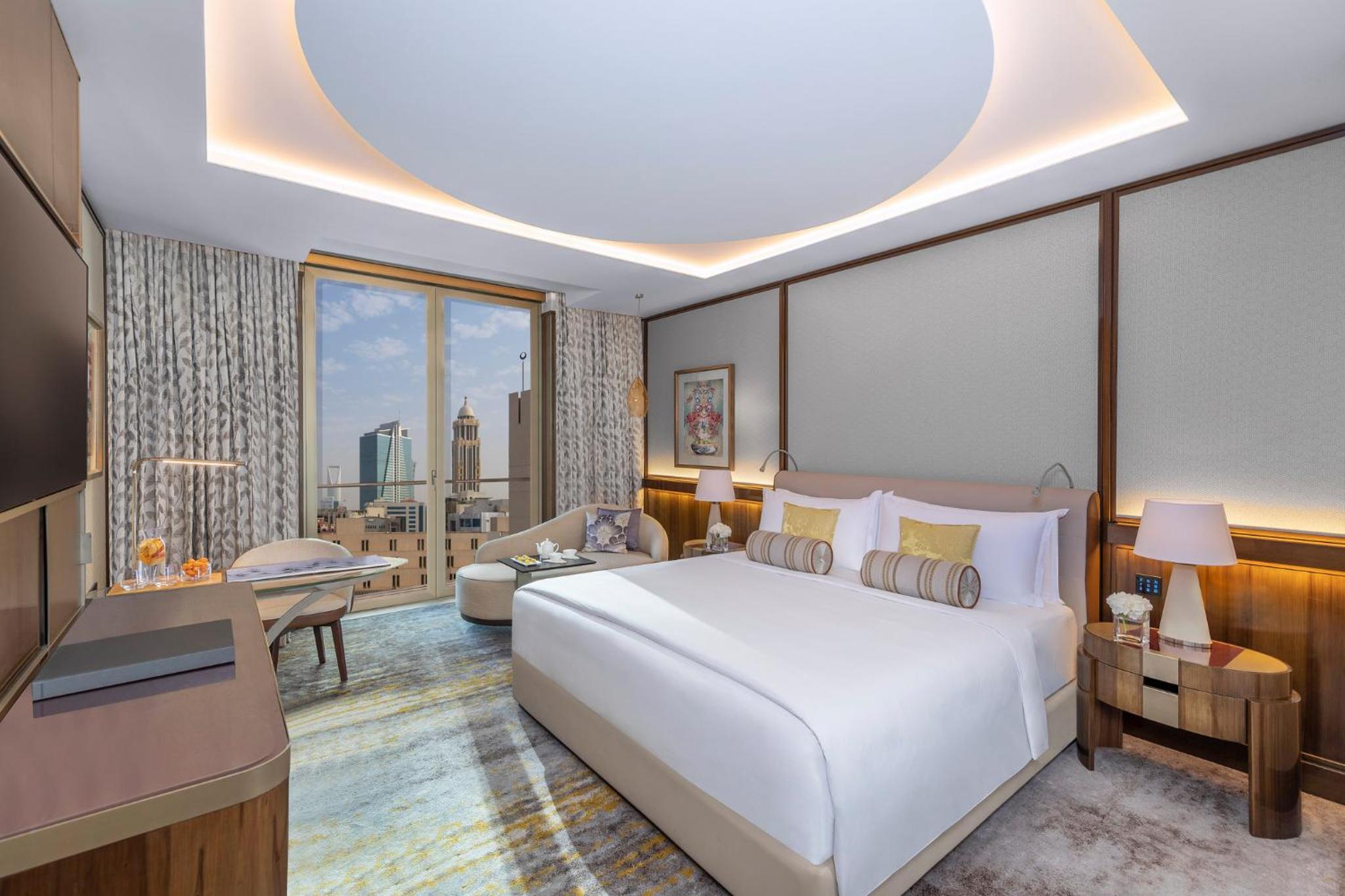 Al Faisaliah Hotel boasts 325 beautifully appointed rooms and suites, each exuding understated luxury and featuring modern amenities like flat-screen TVs and touch-screen controls. The arabesque architectural details combined with contemporary elegance create a refined ambiance for the perfect retreat.