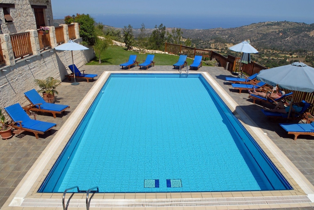 Enjoyed swimming in picturesque pool on hot day! Saw owls fly past early morning and smell of jasmine from bedroom balcony. Very clean rooms with Cypriot character.