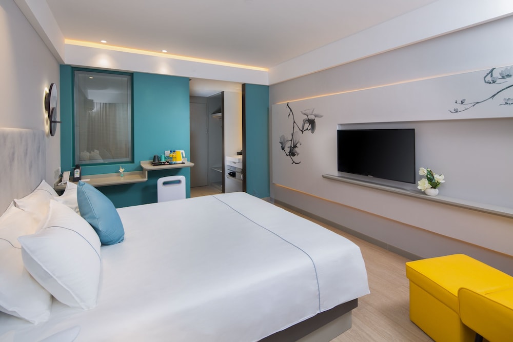 当初へチェーンの安いだけが取り柄のホテルかと思って、何気なく予約しました。そうしたら、とても満足度の高いホテルでした。部屋はダブルのシングルユースの部屋があてがわれましたが、、そこそこ広く、きれいでした。従業員たちは対応が親切で、あまり英語は得意ではなさそうな従業員もいましたが、色々な相談に親切に対応してくれました。強いて言えば、バスルームの壁やシャワーの劣化がありました(バスルームの清掃はきれいでした。)。でもこの値段なら、問題ないレベルの劣化だと思います。今後中国へ行く時は他都市でも、このチェーンを利用するつもりです。他都市の