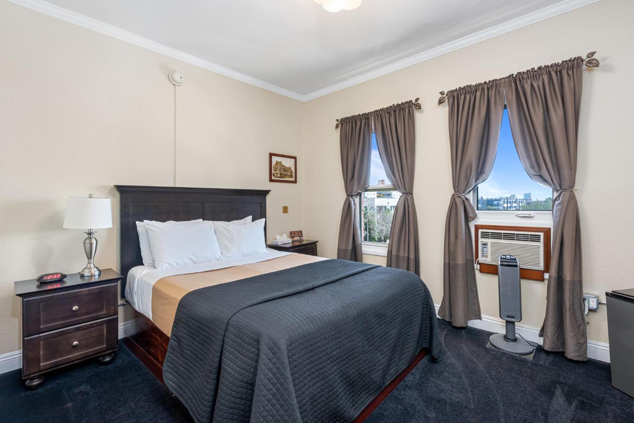 Experience the allure of Old Hollywood at Hollywood Historic Hotel, just a short stroll from Paramount Pictures and the iconic Hollywood Walk of Fame. Step into a piece of history with our rooms adorned with original 1927 fixtures, complemented by modern amenities like flat-screen TVs and free Wi-Fi.