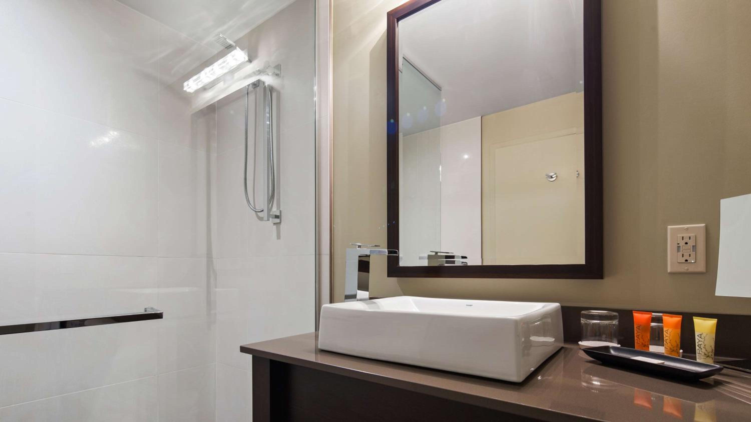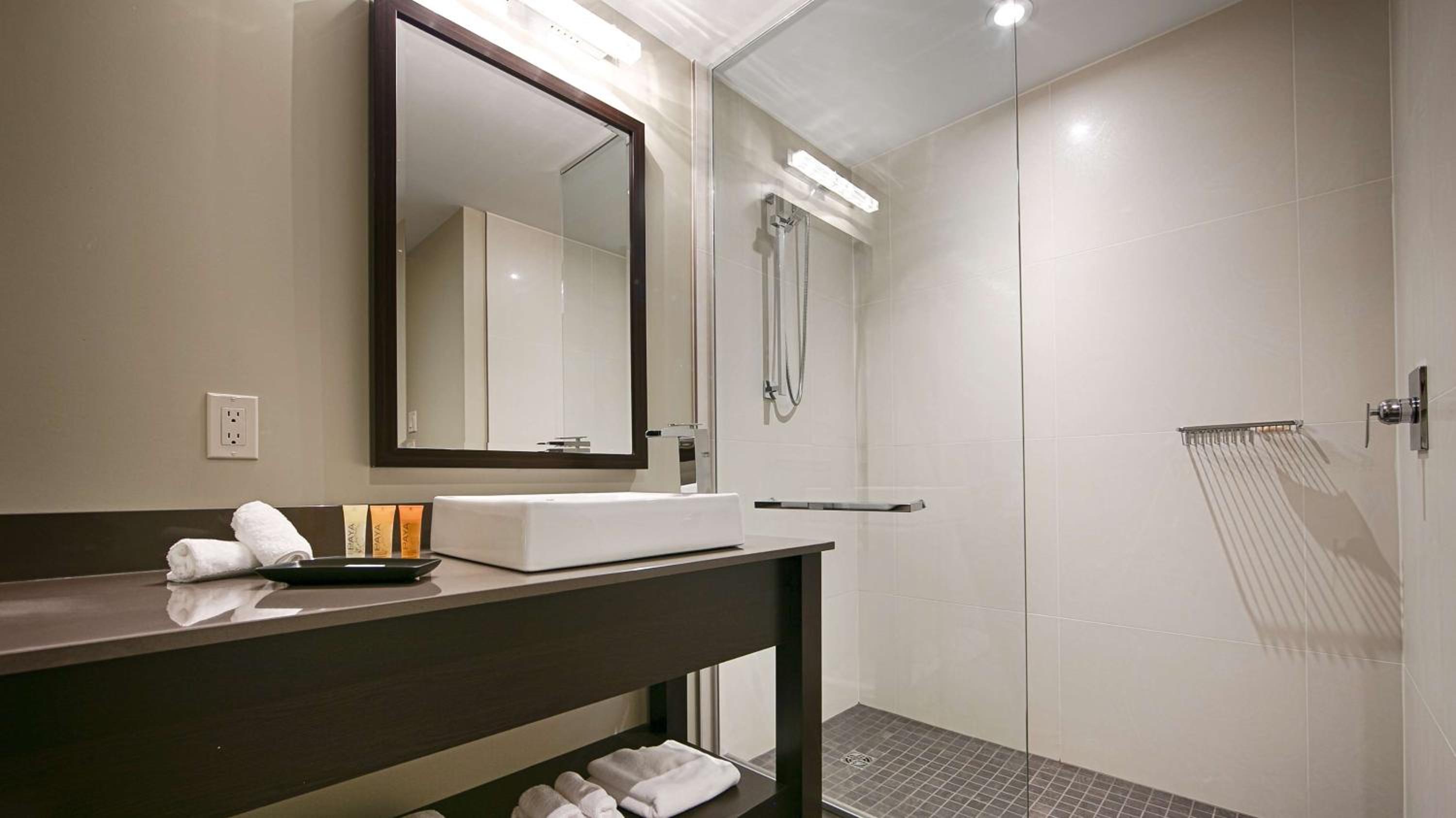 Indulge in comfort with guest rooms featuring a seating area, flat-screen cable TV, and iPod docking station. Take advantage of meeting facilities, an indoor Nordic spa, pool, and gym for a relaxing stay.