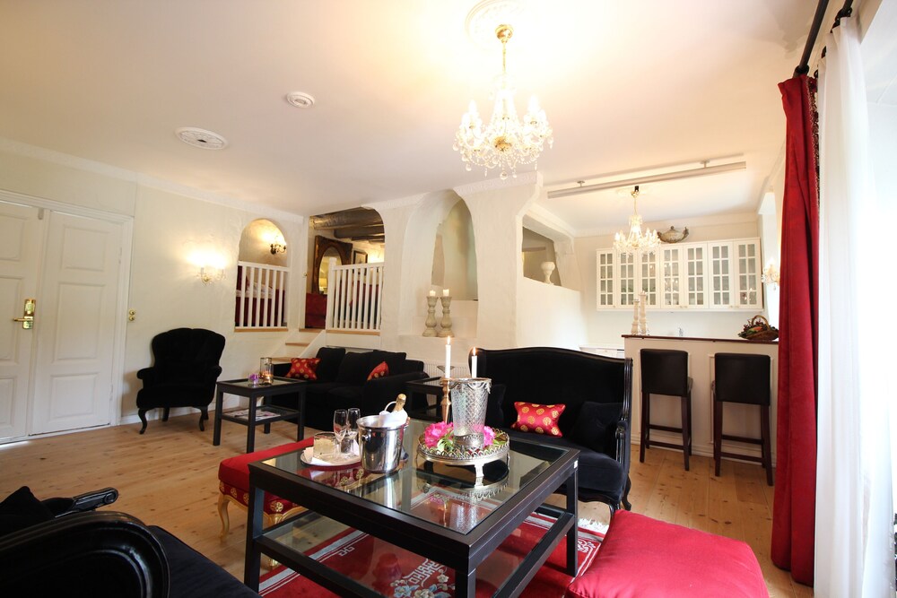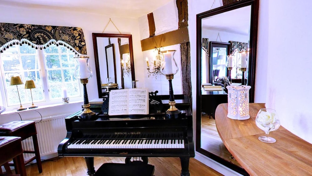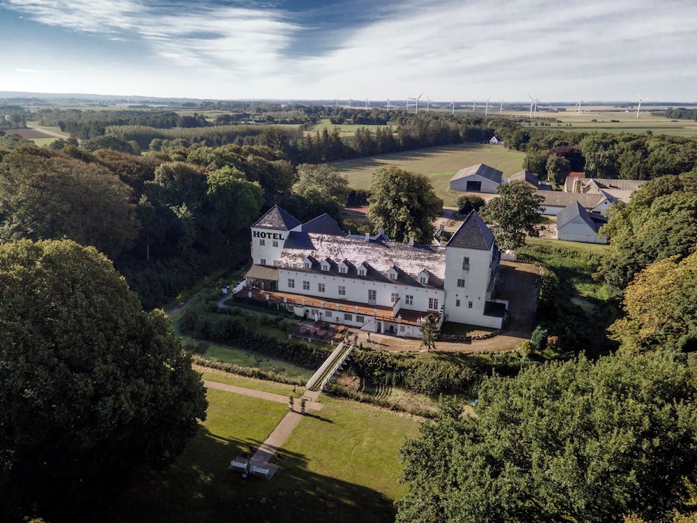 Hyggeligt slotshotel med masser af charme. Pænt værelse med bad og masser af puder i sengen 😊 eneste ulempe var den stejle vindeltrappe til 1.sal hvor løft af kuffert og dragtpose var udfordrende for en mand på min alder (70) derfor ikke velegnet til handicappede