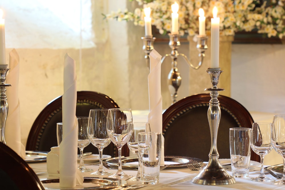 En time før ankomst fik vi besked på at vi var de eneste gæster på slottet samt at restaurationen var lukket så vi hverken kunne få vådt eller tørt før næste morgen, hvor vi til gengæld mødte en sød og serviceminded morgendame, der viste os rundt på slottet i dagslys. Burde ikke tage mod gæster uden for sæsonen.