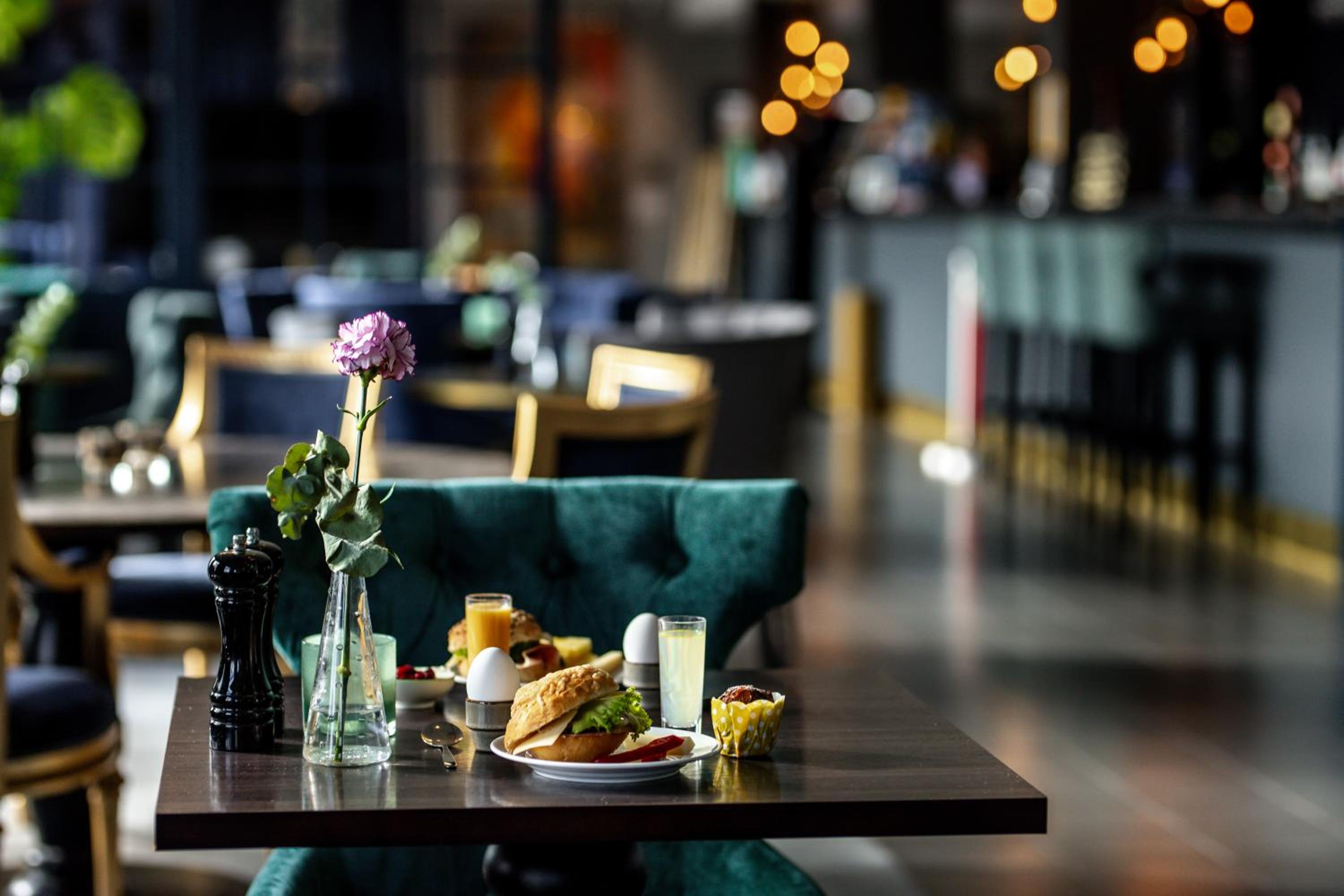 Indulge in a variety of culinary delights with our à la carte and bistro menus while enjoying the artistic ambiance of our dining room adorned with famous paintings.