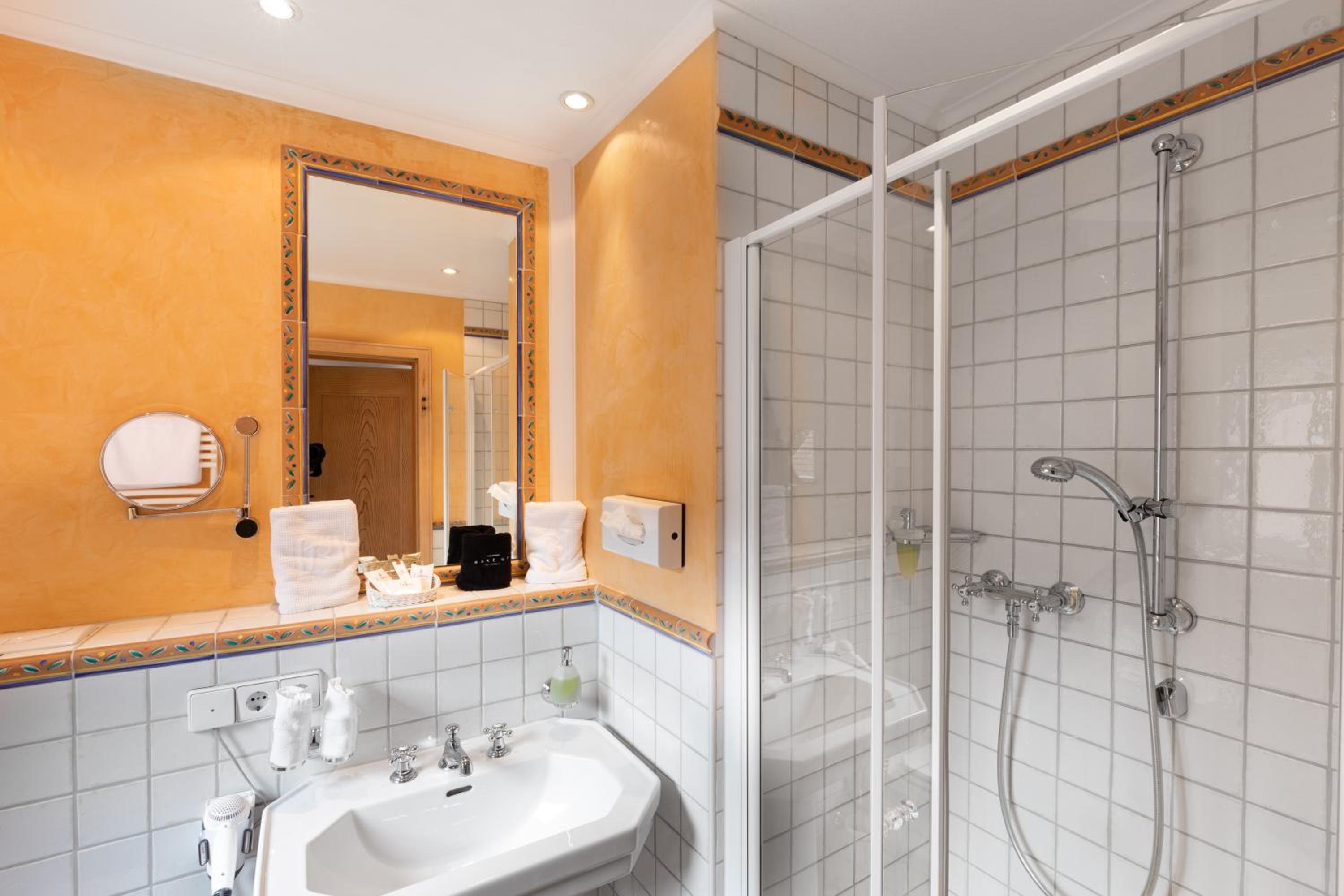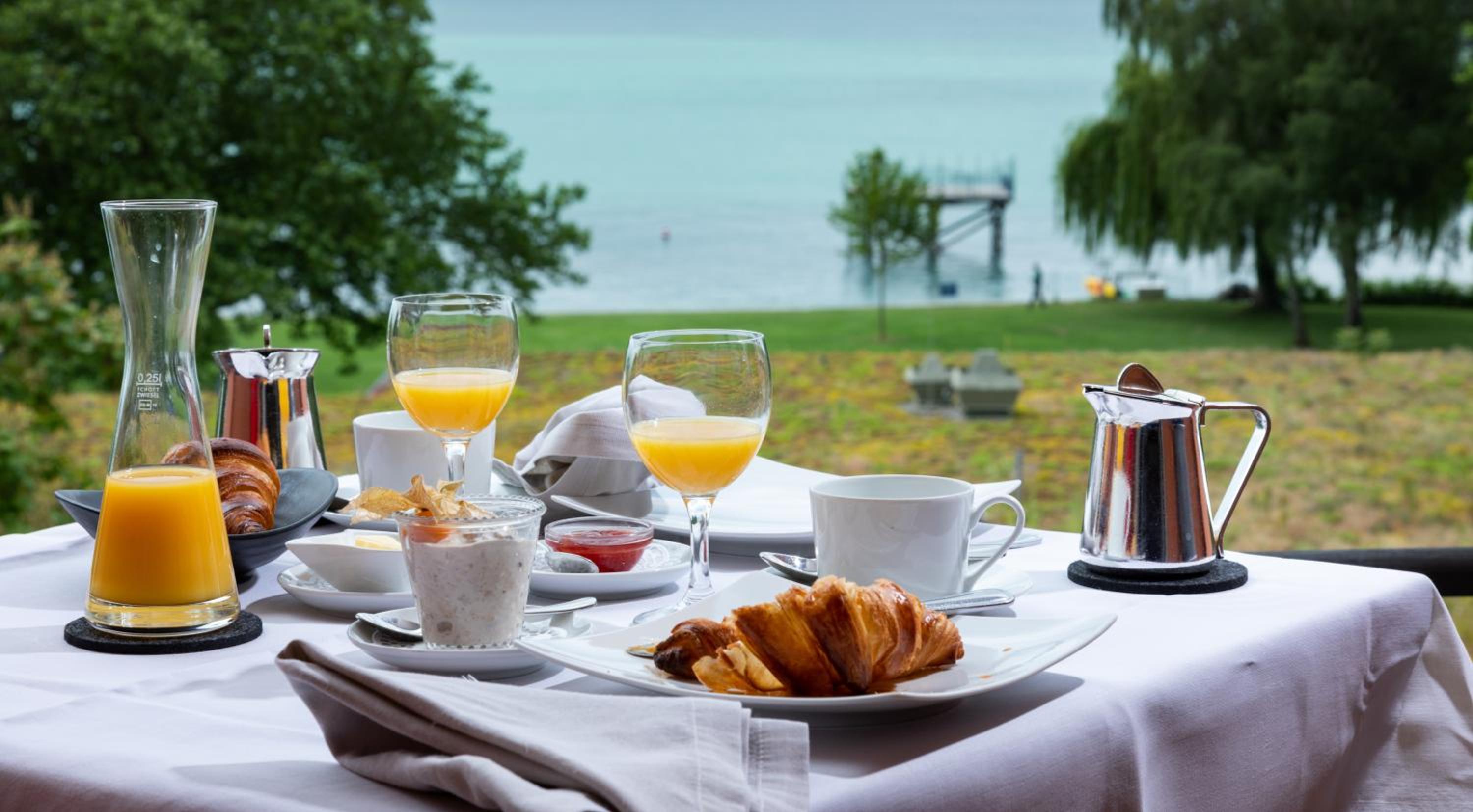 The ambience and furnishings throughout the establishment were so lovely, and the greeting from staff upon arrival was an unexpected treat: complimentary champagne, juice and hors d'oeuvres offered as you enter the hotel. The breakfast is unsurpassed from our prior travels elsewhere and the dinner was truly amazing. The staff were so professional, kind and friendly and the rooms were simply gorgeous. It is perfectly located within a very short walk to the lovely shore of Lake Constance, restaurants and sites of beautiful Meersburg.