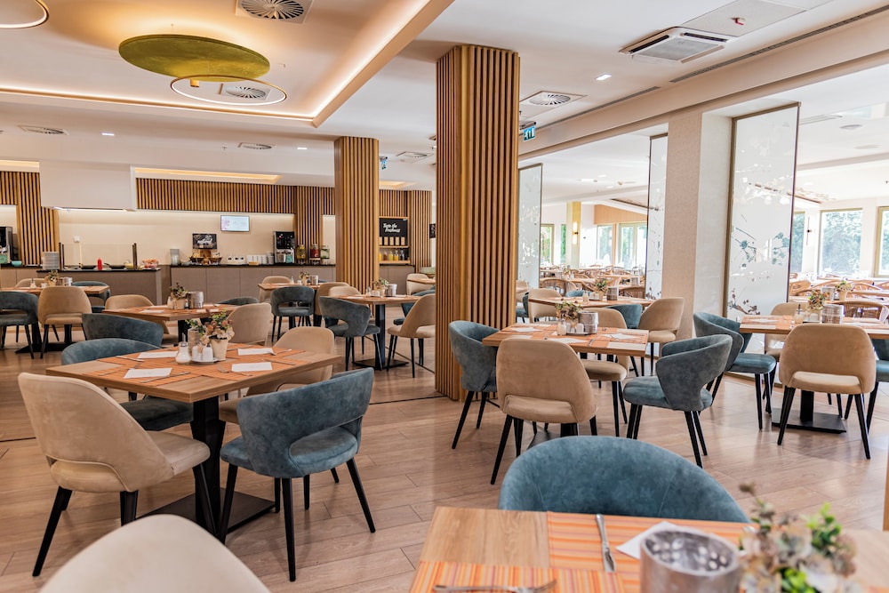 This hotel is supposed to be one of the top notch hotels in Zalakaros, besides Radisson Park Inn, yet it's very far from that level. Staff was neutral when we checked-in, we didn't feel that we were welcome at all, we didn't even get a single smile from any of the staff members during our stay, they barely even wanted to greet us back. The food was very disappointing, I can say terrible. We've stayed countless times at wellness hotels in Hungary in thermal towns, yet had never encountered such unfriendly - not rude, just totally careless - staff, so bad, tasteless food with such few choices, at every other hotels there were at least 4-5 main courses which of at least some were for sure to everyone's likeing. Meanwhile here they obviously used reminder food from breakfast (such as ham, bacon), etc. Breakfast was equally super limited and disappointing. They should have a egg-station, where warm egg dishes are frwshly made. There were two new super high tech robots (a server at the bar, and another at the lobby, both out of order, so we couldn't even find out the purpose/ function of the latter one).