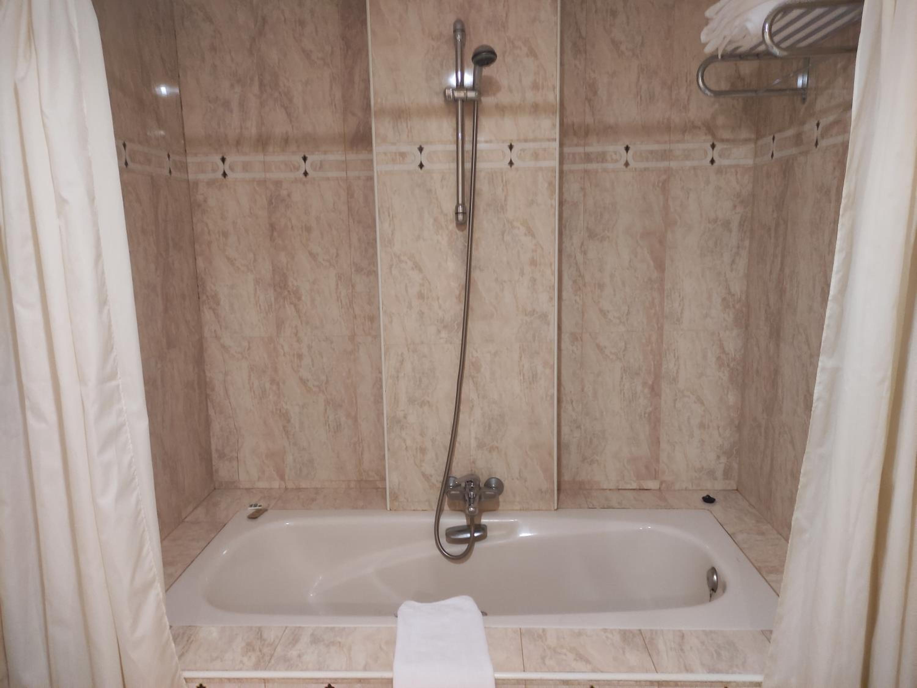 Limpieza muy deficiente, tomando en cuenta que tenía alfombra la habitación. Baño con piezas viejas y una de ellas mal puesta. Los Colchones y almohadas deficientes, se sentían vencidos y muy incómodos.