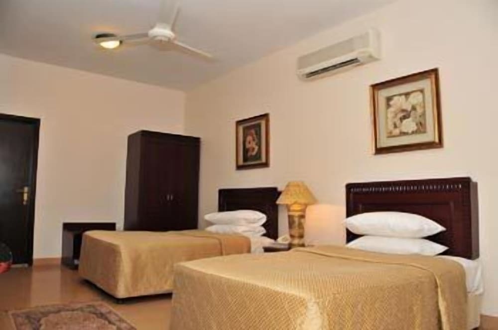 This hotel provided 2 attached rooms for my wife and me and our 2 teenage daughters. This was an ideal situation. The rooms were nice and clean. We had a leak in a bathroom pipe and they fixed it promptly. The location is in an industrial area that is not very attractive, but once inside, you forget about it. The breakfast and dinner buffets were good quality. We used the hotel as a base camp for venturing to the nearby wadis and beaches, and to see the sea turtles. It is an ideal central location, about 2 to 3 hours from Muscat airport. We stayed for 3 days and will use this hotel again if we go back to the area.