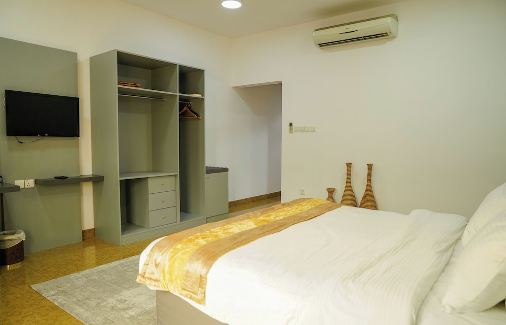 This isn't the Holton and it looks like there maybe some room renovations being undertaken but balancing the price point with offering it is reasonable. The air-conditioned room offers good sized bed, TV bathroom and even a kitchen with fridge microwave washing machine sink cupboards counter kettle and tea making facilities. What excels in this hotel are it's staff. They are genuinely warm welcoming and really do what they can to help you enjoy your stay. The restaurant is also amazing with great food choices. The hotel also offers a late checkout facility which in my case was good as my return flight was very late. I got to enjoy a full final day in Oman then return to the hotel to wash tidy pack and head to the airport. Its location is truly good, and Al Khuwair is one of the best places to stay if you are visiting Oman as its has more natural prices on offer from the commercial shops there. I look forward to this hotel completing renovation of some remaining rooms to really draw the tourist crowds its truly deserves. Again what you will appreciate most is the warmth and the staff there..