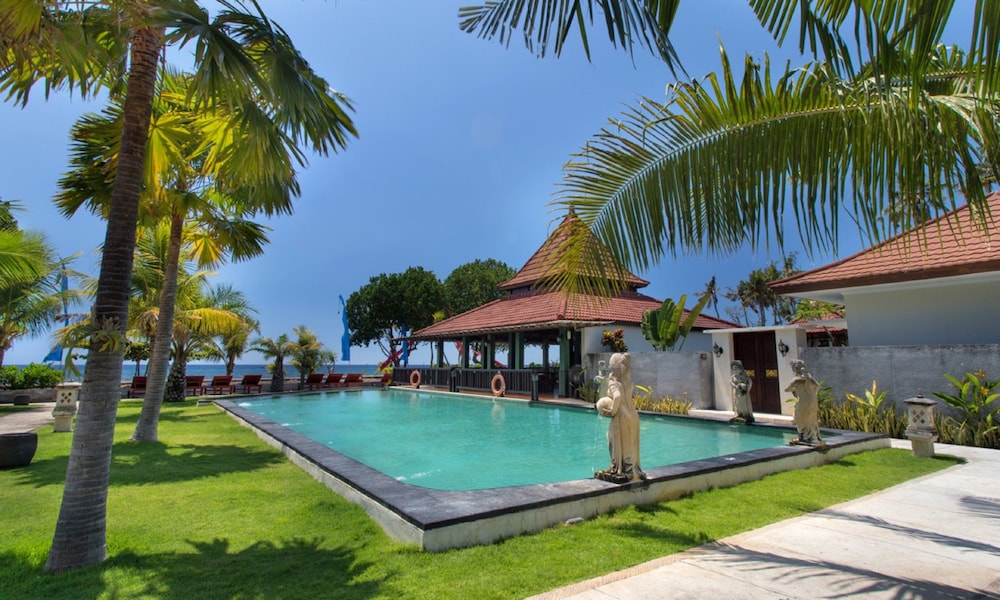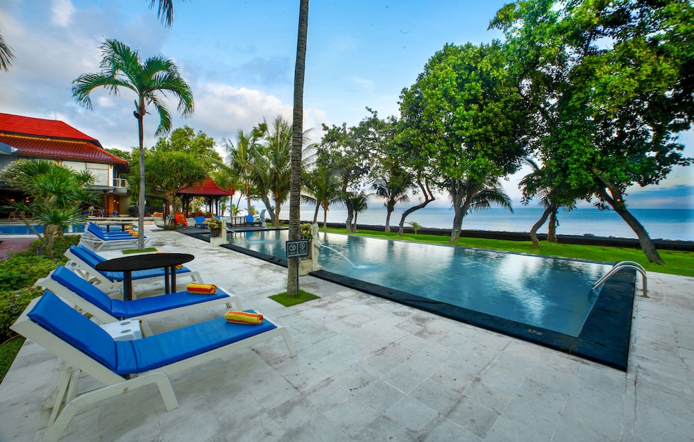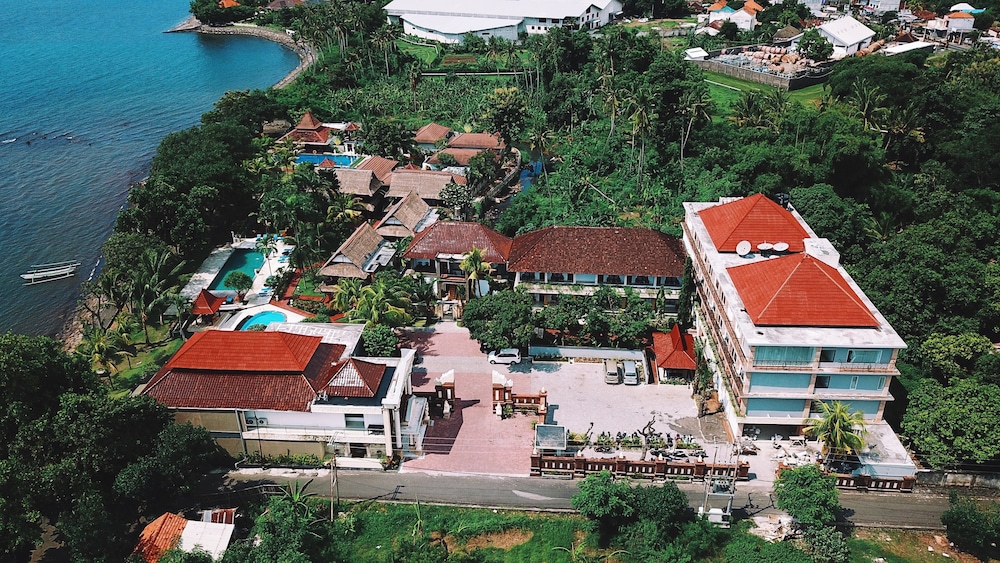 Nahe bei Singaraja und doch ganz ruhig an schöner Lage am Strand, dazu noch zwei Pools, ein grosser und ein kleiner. Ausserordentlich professionelle Rezeption, freundlich, vorbereitet und kompetent. Gute, praktisch eingerichtete Zimmer mit schöner Meersicht, freundliche Parkanlage, überdecktes offenes Restaurant mit guter Auswahl - allein der freundliche Service ist mit der Reihenfolge der Gänge etwas überfordert. Ausserordentlich preiswert für das angebotene Niveau.
