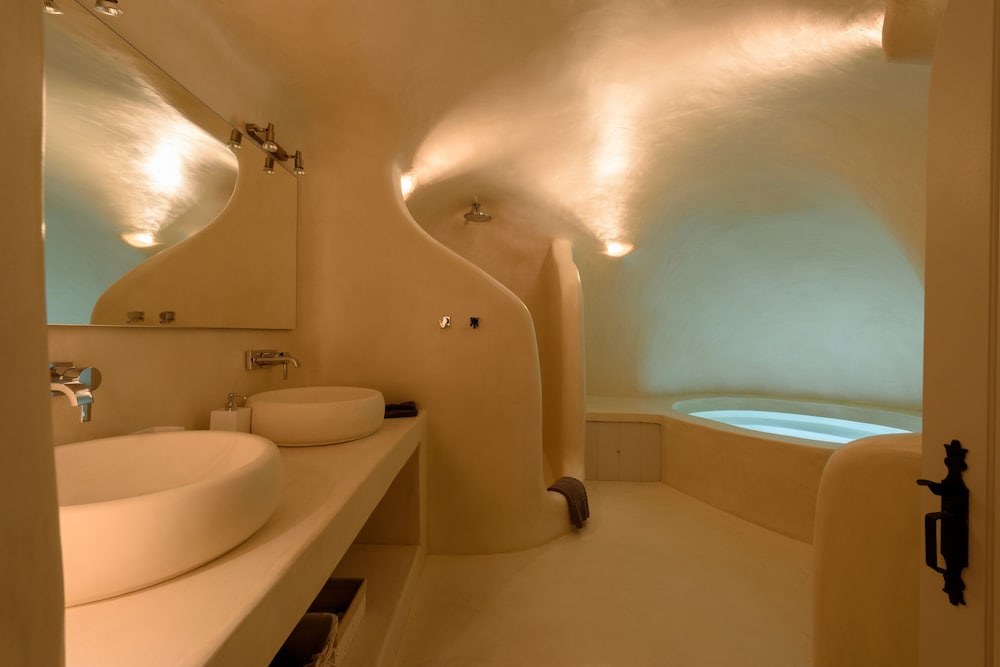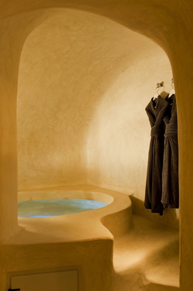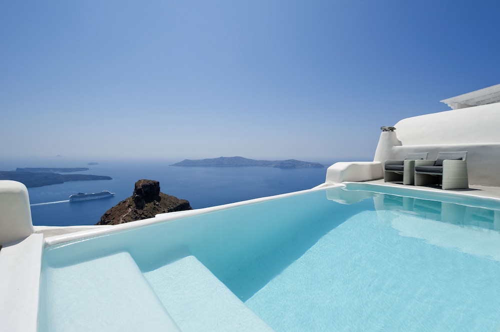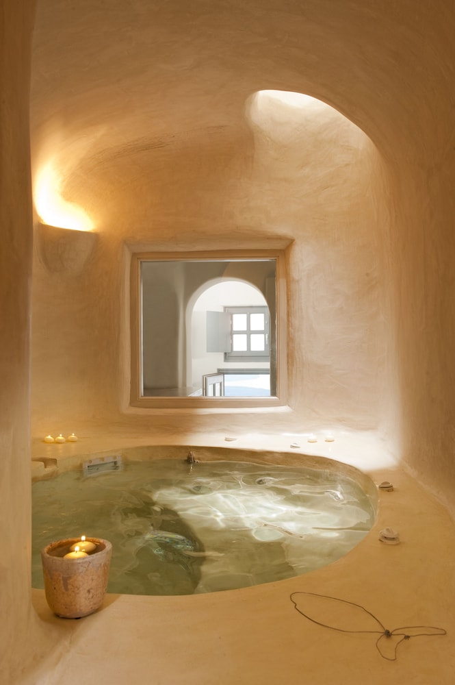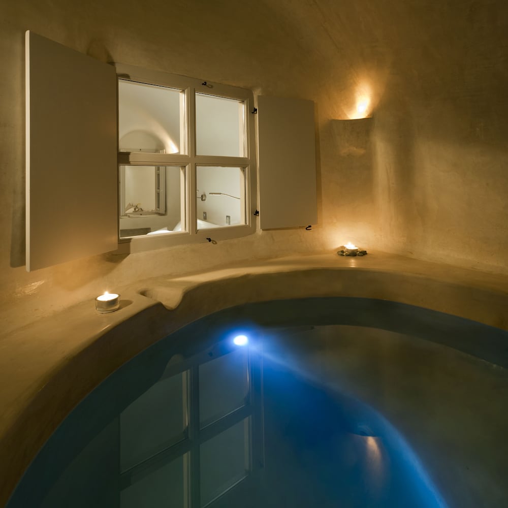 Hotel was closer to a 2 star N. American hotel. View is awesome, staff mostly friendly. Room was a major disappointment, outdated, stunk of chlorine, muggy from indoor hot tub, and basically felt like a Motel 6. Basic tourist trap like so many of the businesses on Santorini Island. Grossly overpriced.