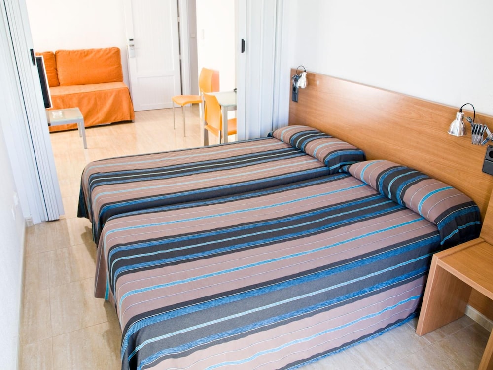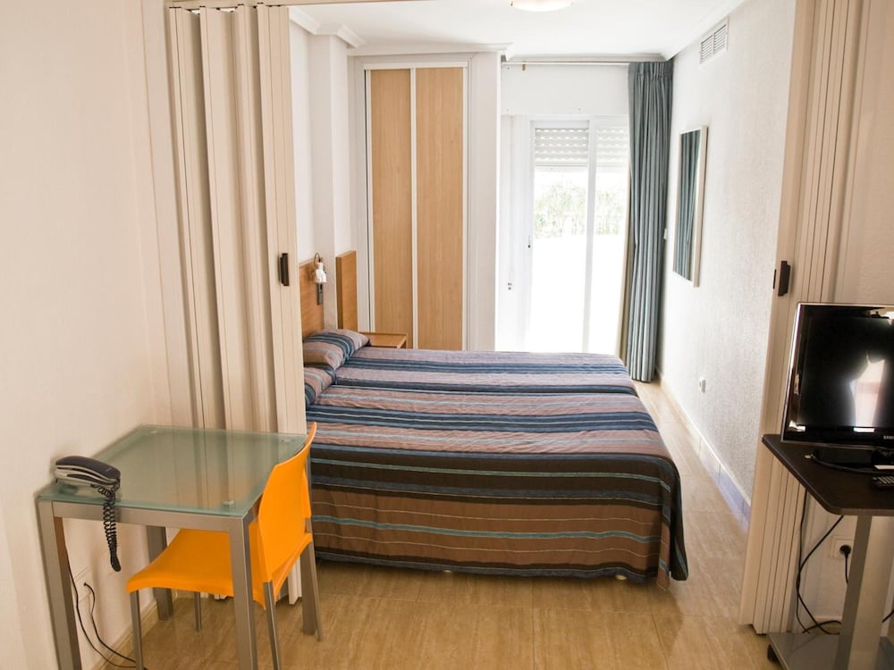 Chambre assez spacieuse avec kitchenette équipée lave linge . Environnement calme Piscine non testée mais agréable . Accès à la mer Menor à pied direct depuis l'hôtel . PDJ pas terrible . Un peu juste au niveau des produits SDB .