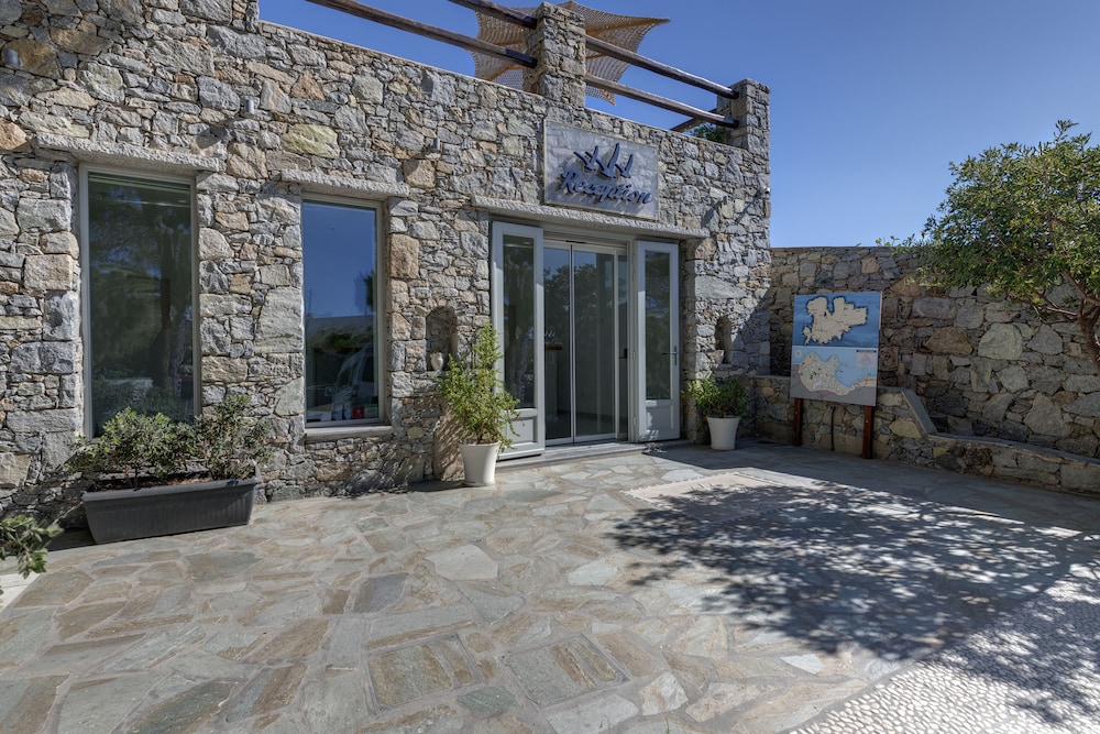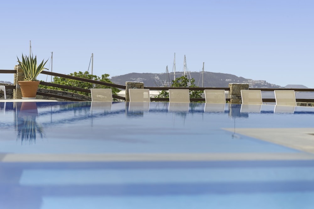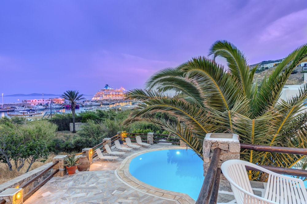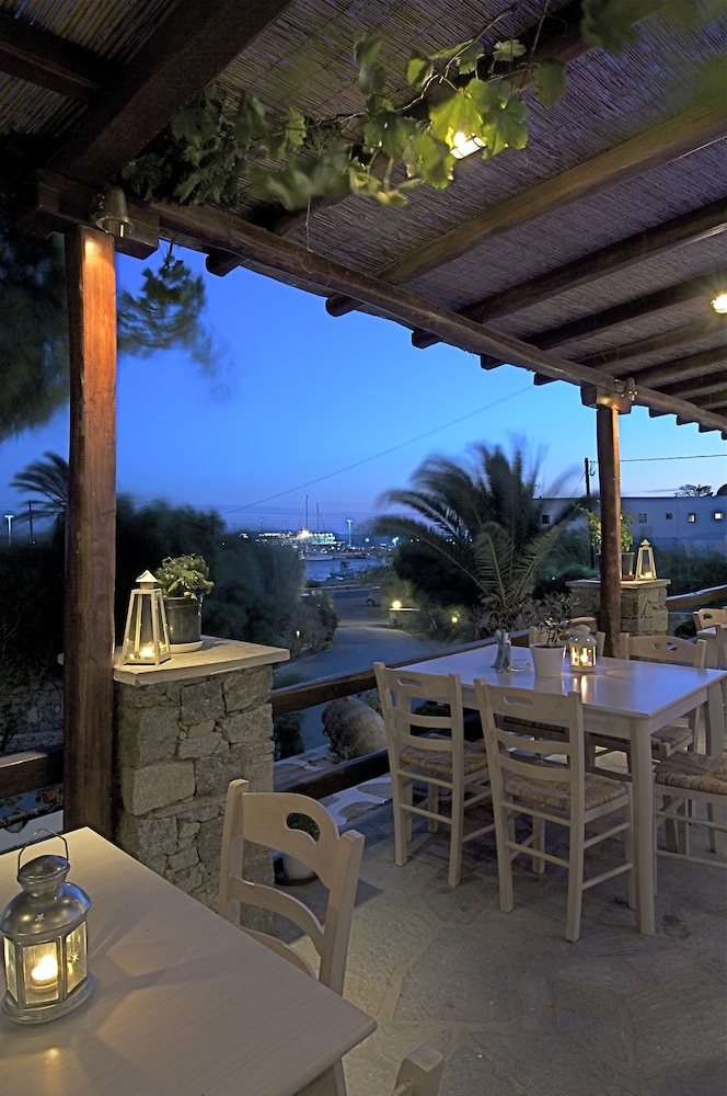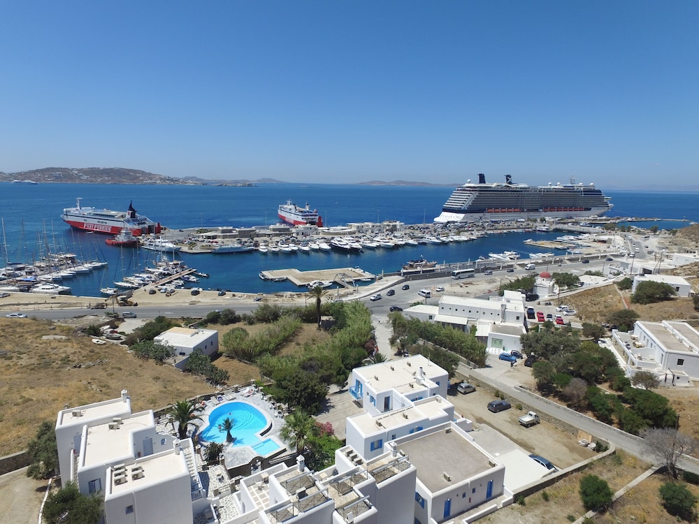 Conveniently located near new port. Great staff. Nice pool. Excellent restaurant onsite. Sea bus to Mykonos town stops across the road. Complimentary transfers. Highly recommend.