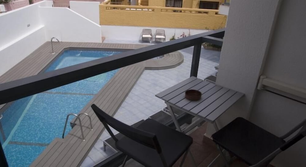 This hotel was ideally situated a short stroll from the beach, the little port and many restaurants. It is a new smart little place with on-site parking and a small pool, and is easily found on the right as you enter San Jose on the main road. Our room was bright and clean, fully equipped, quiet and comfortable.