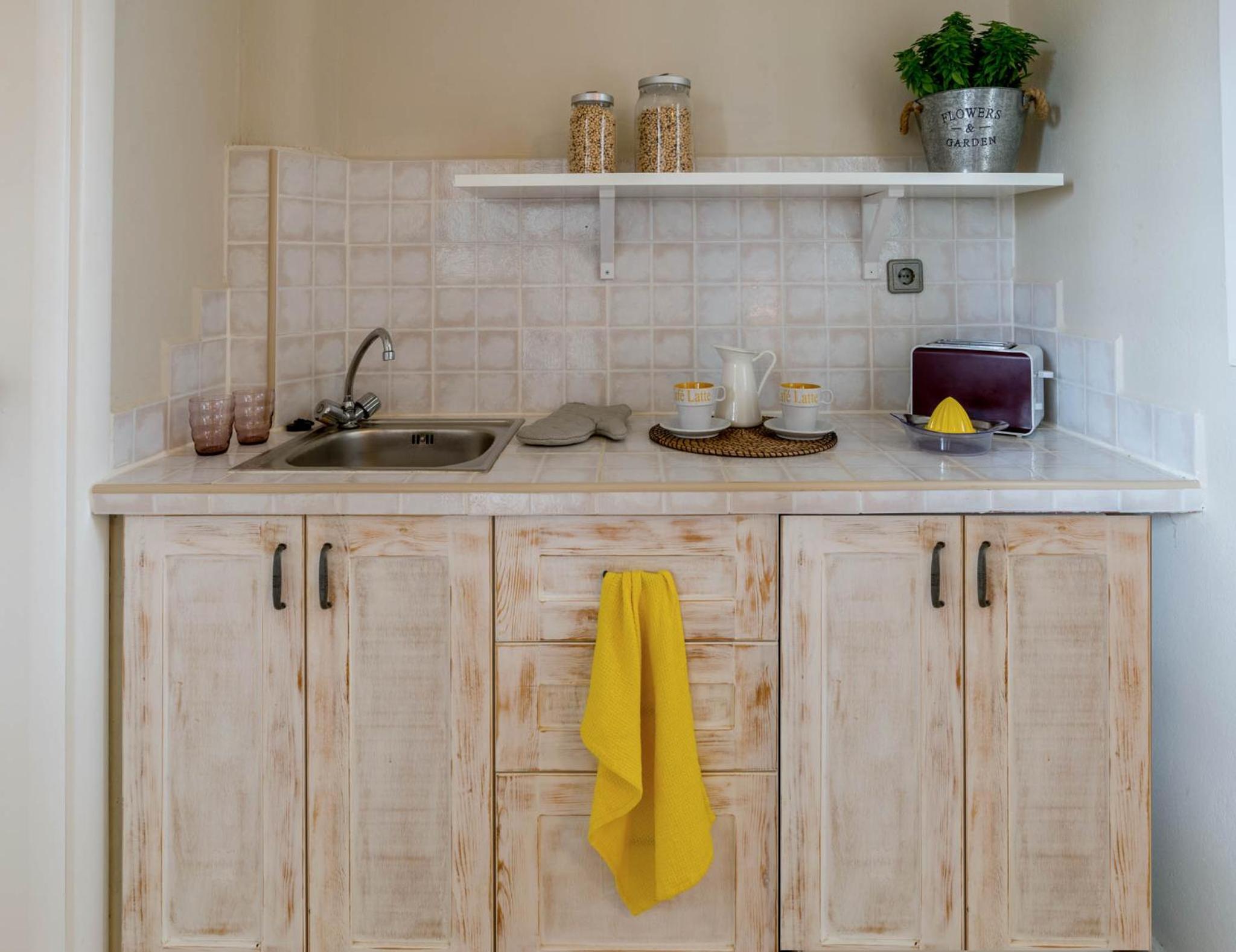 Enjoy a tranquil stay at Golden Sun Boutique, where a swimming pool, pool-side snack bar, and sun loungers await you. The terracotta-walled studios overlook the serene garden and pool, providing a perfect setting for relaxation.