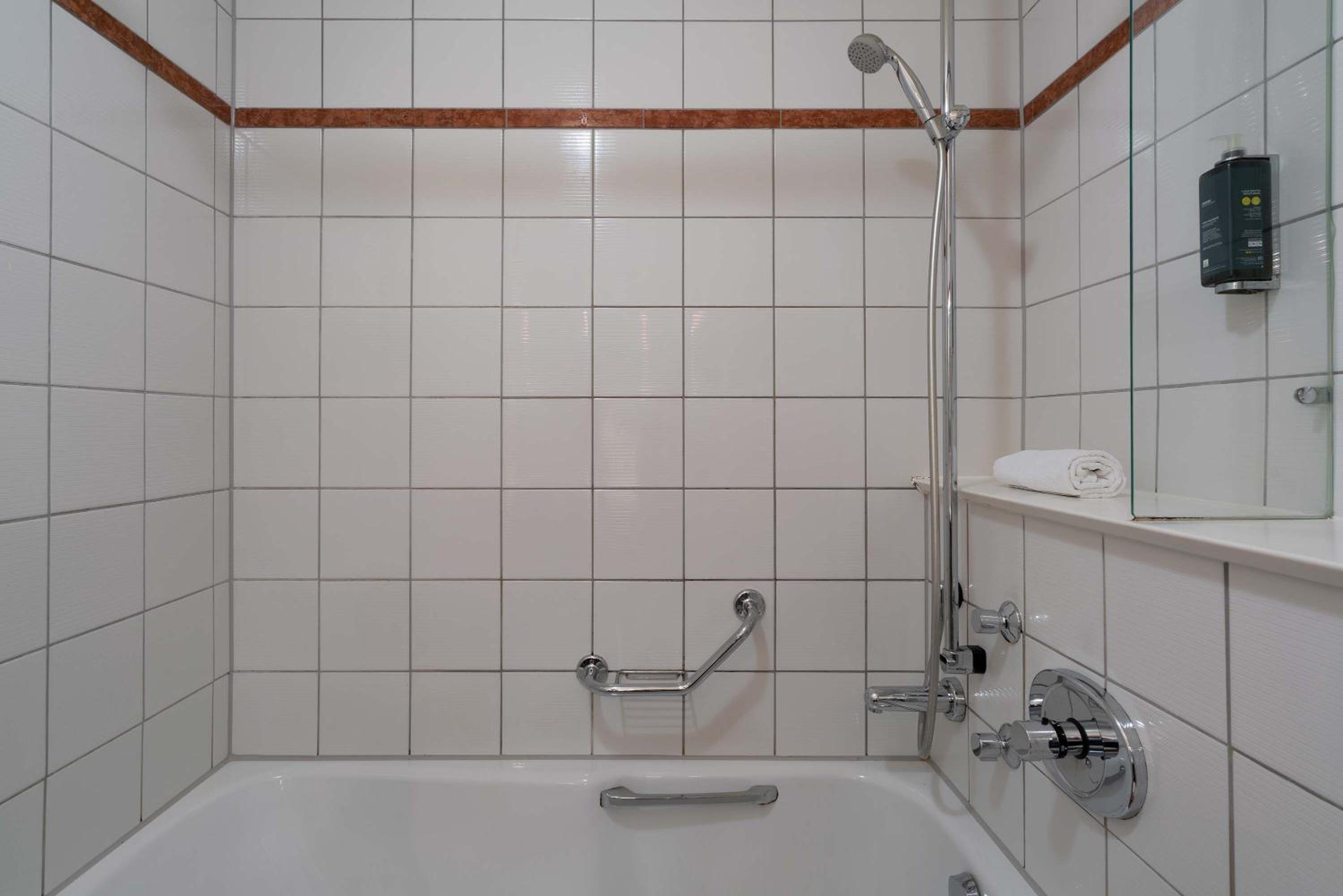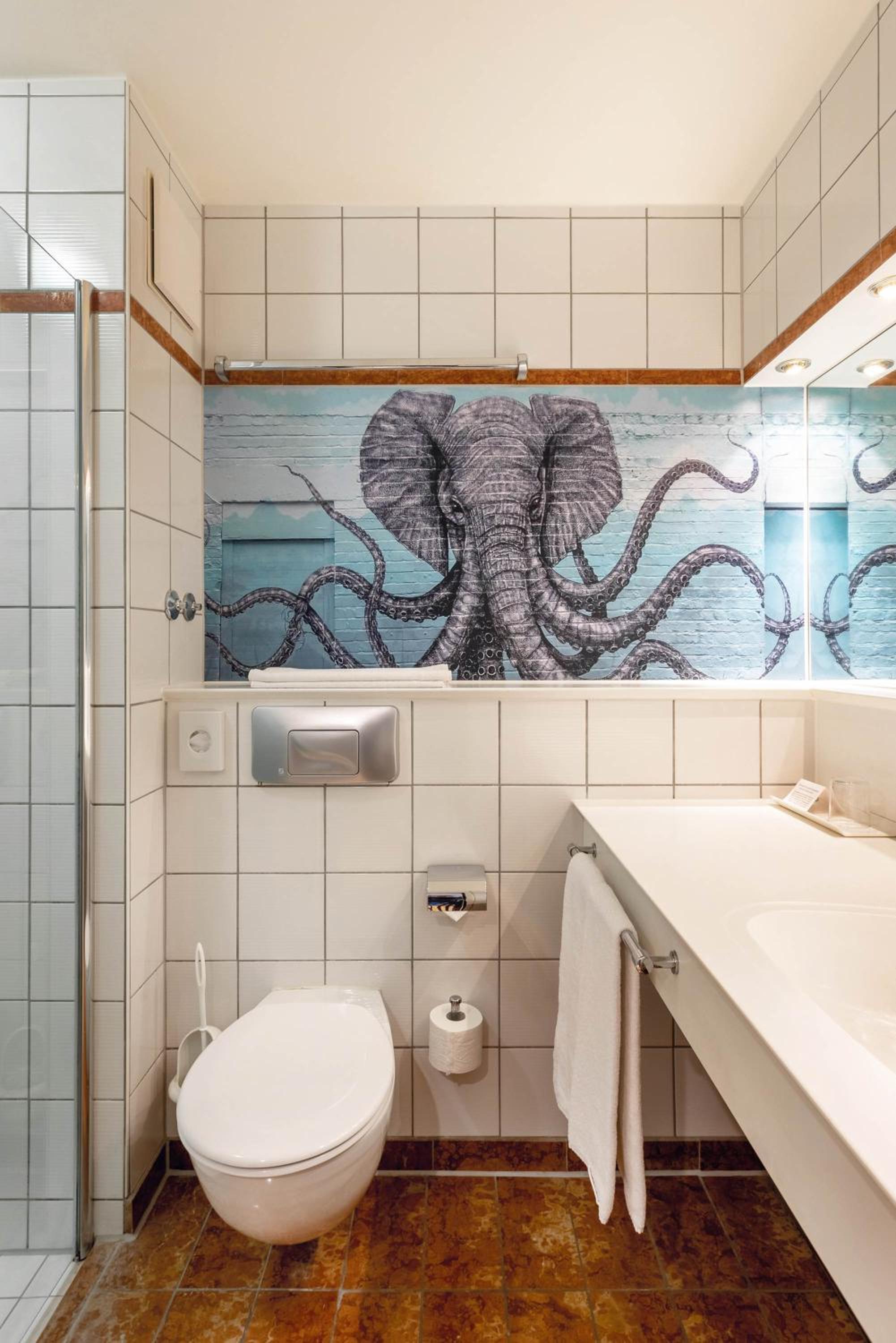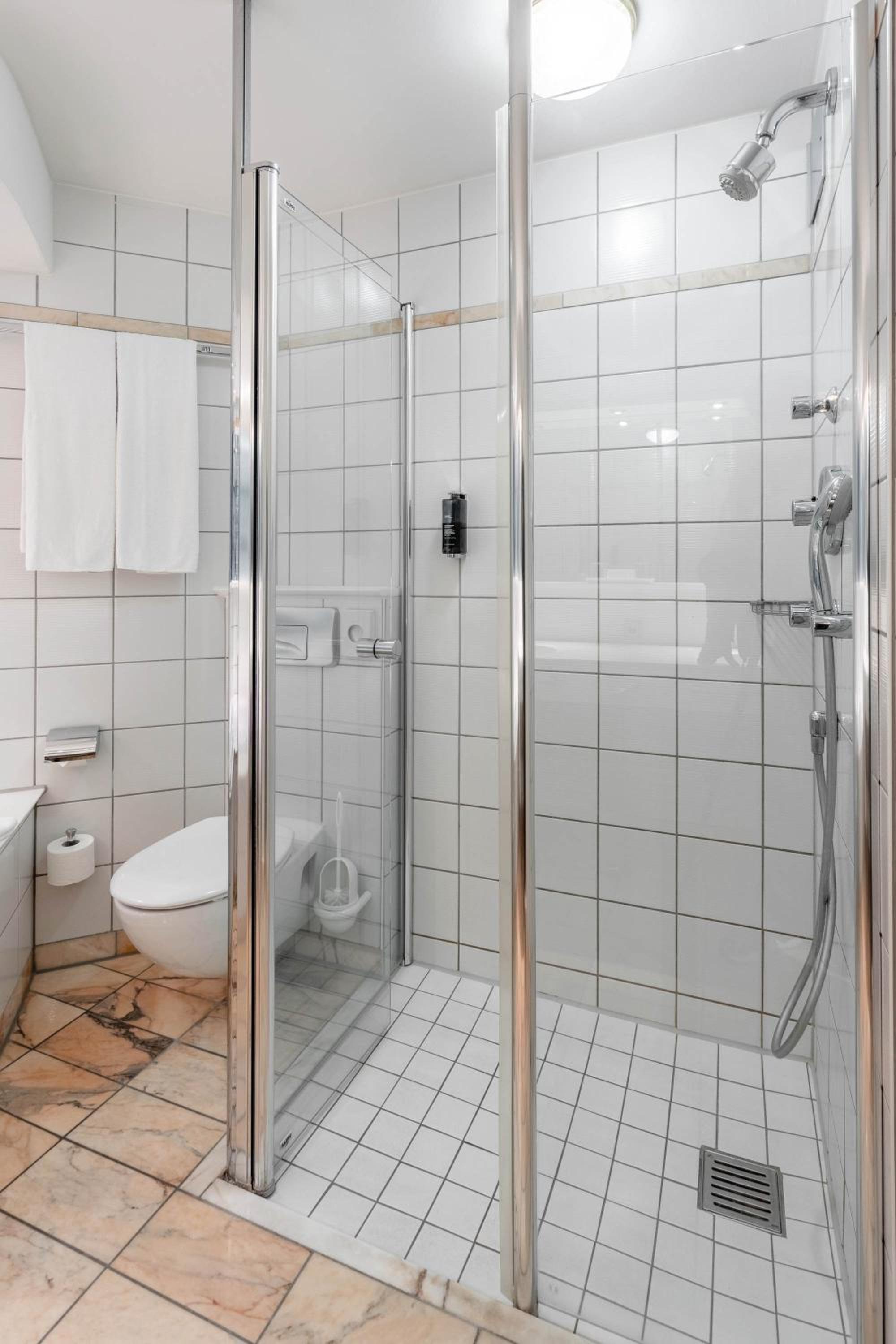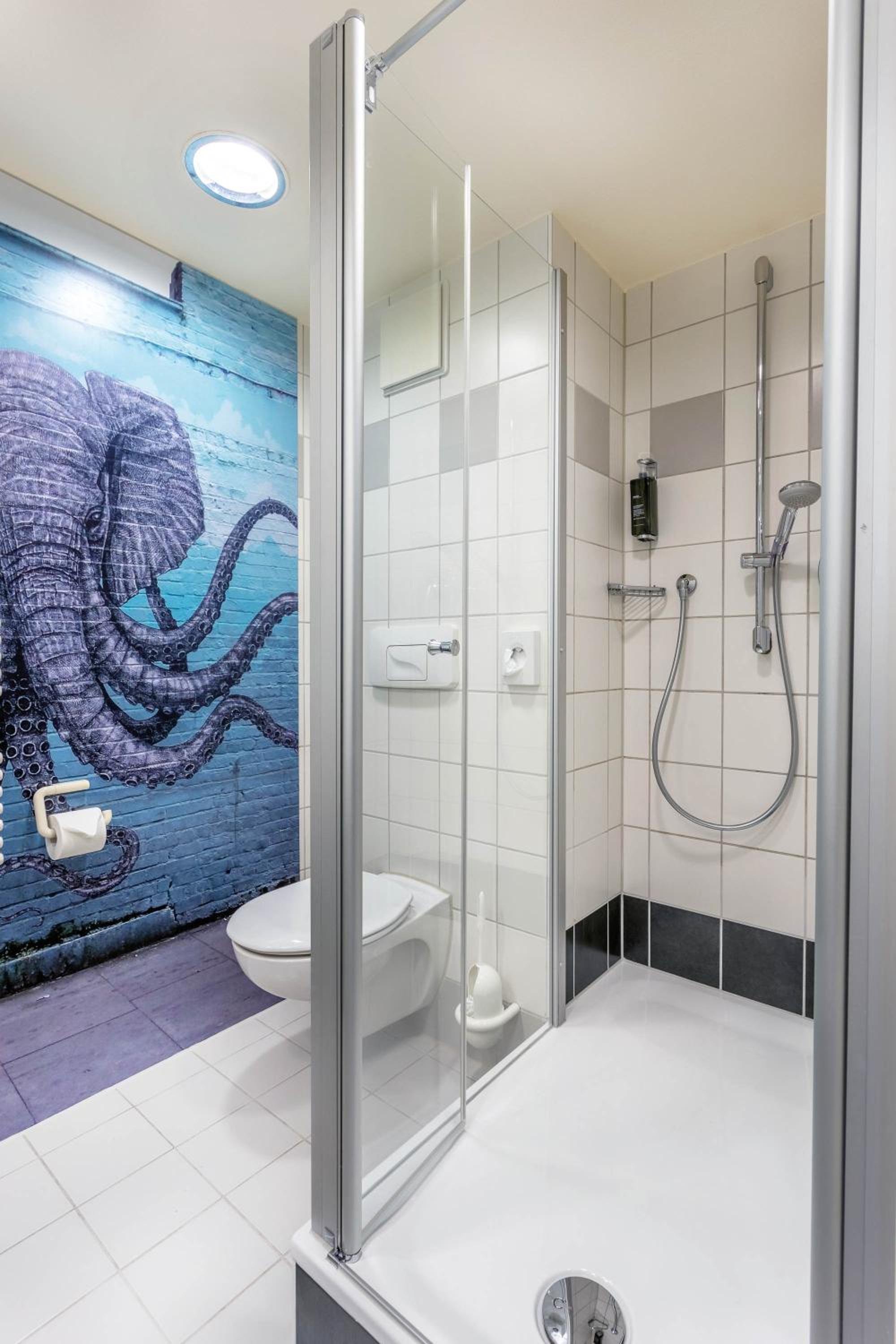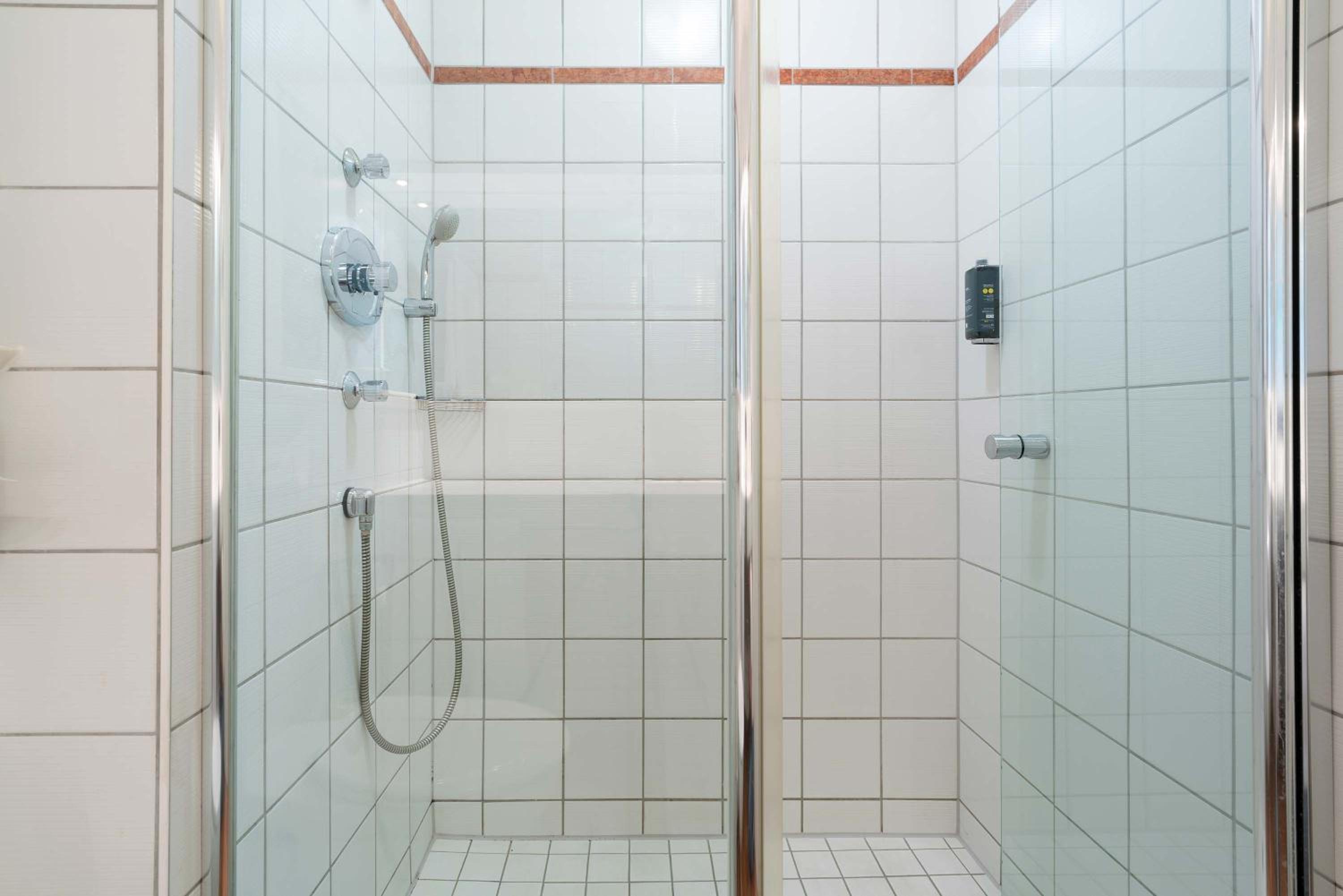 De douche was niet helemaal schoon, er lag vuil in de douchebak en er zaten 3 spinnen in. Er kwam roestwater uit één van de twee handdouches toen ik de kraan aanzette en de knop van de deur was kapot. De rest van de badkamer en kamer waren wel netjes en schoon.
