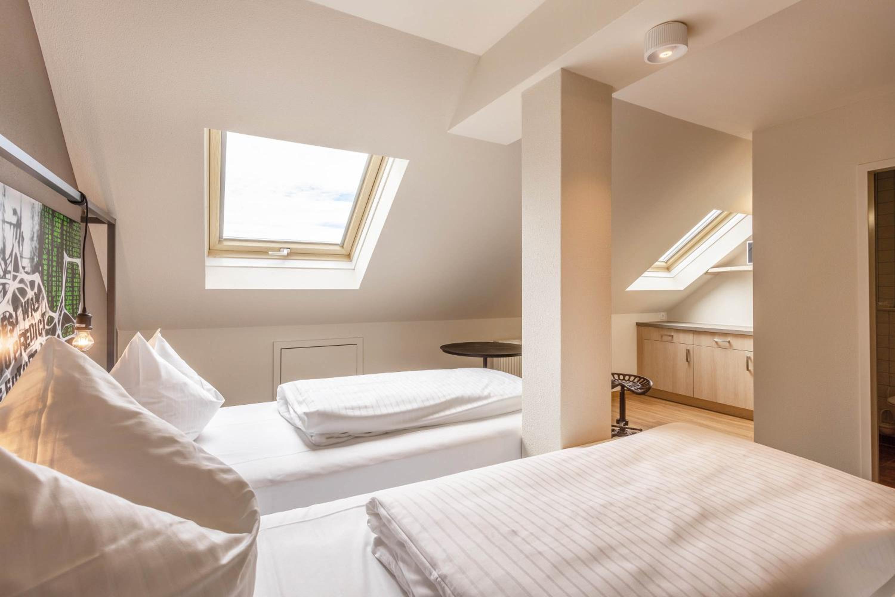 Fantastische bedden. Ja de bedden en kussens zijn zeer goed. Kamer en badkamer zijn netjes. Goede ligging op doorreis naar het zuiden. Heel rustig.