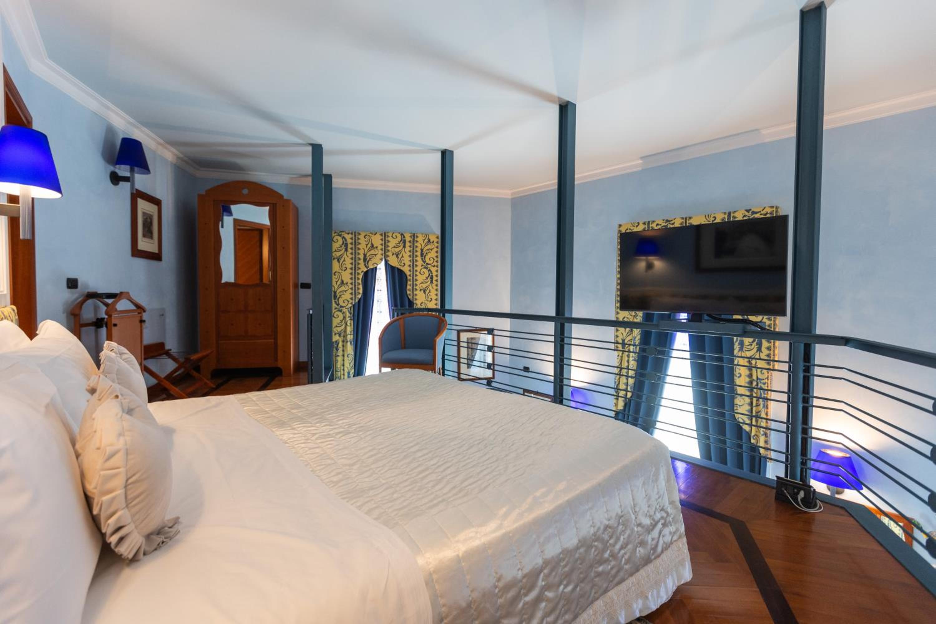 The spacious rooms at the Grand Hotel Ortigia are well-equipped with modern amenities such as free Wi-Fi, flat-screen TVs, and air conditioning. For added luxury, some rooms even feature a relaxing spa bath for guests to unwind in.