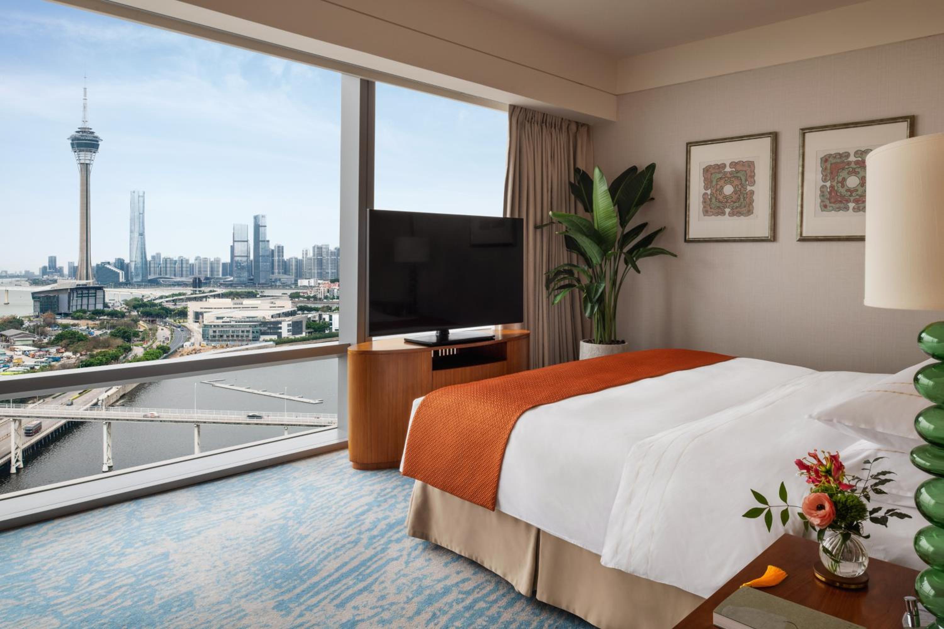 The elegantly designed guestrooms provide picturesque views of Nam Van Lake, Macau Tower, or Taipa Island. Each room is equipped with modern amenities such as air conditioning, flat-screen TV, and tea/coffee facilities, ensuring a comfortable stay.
