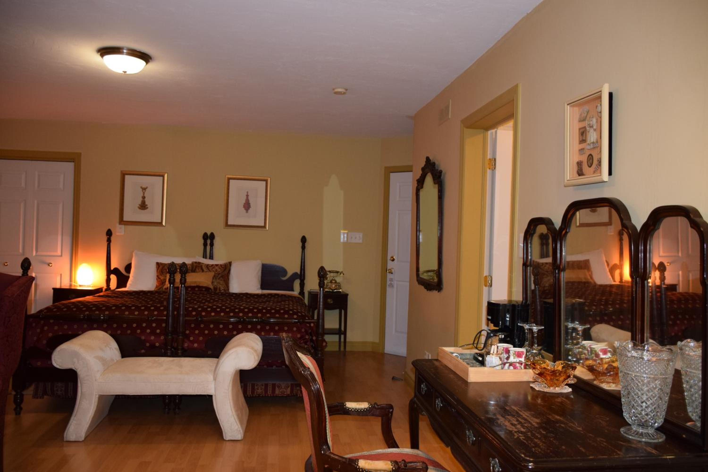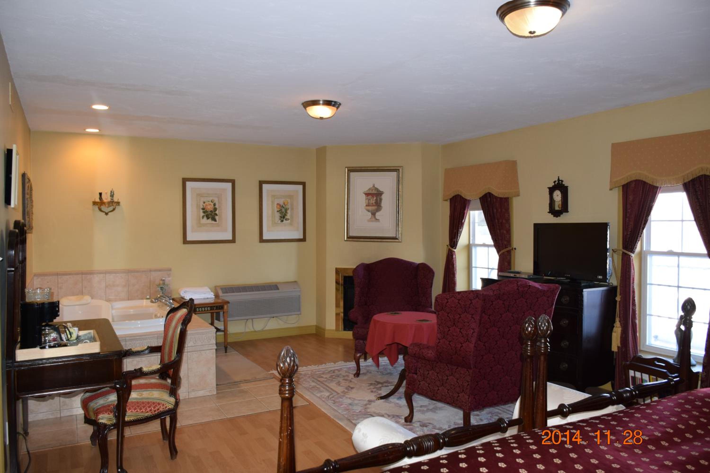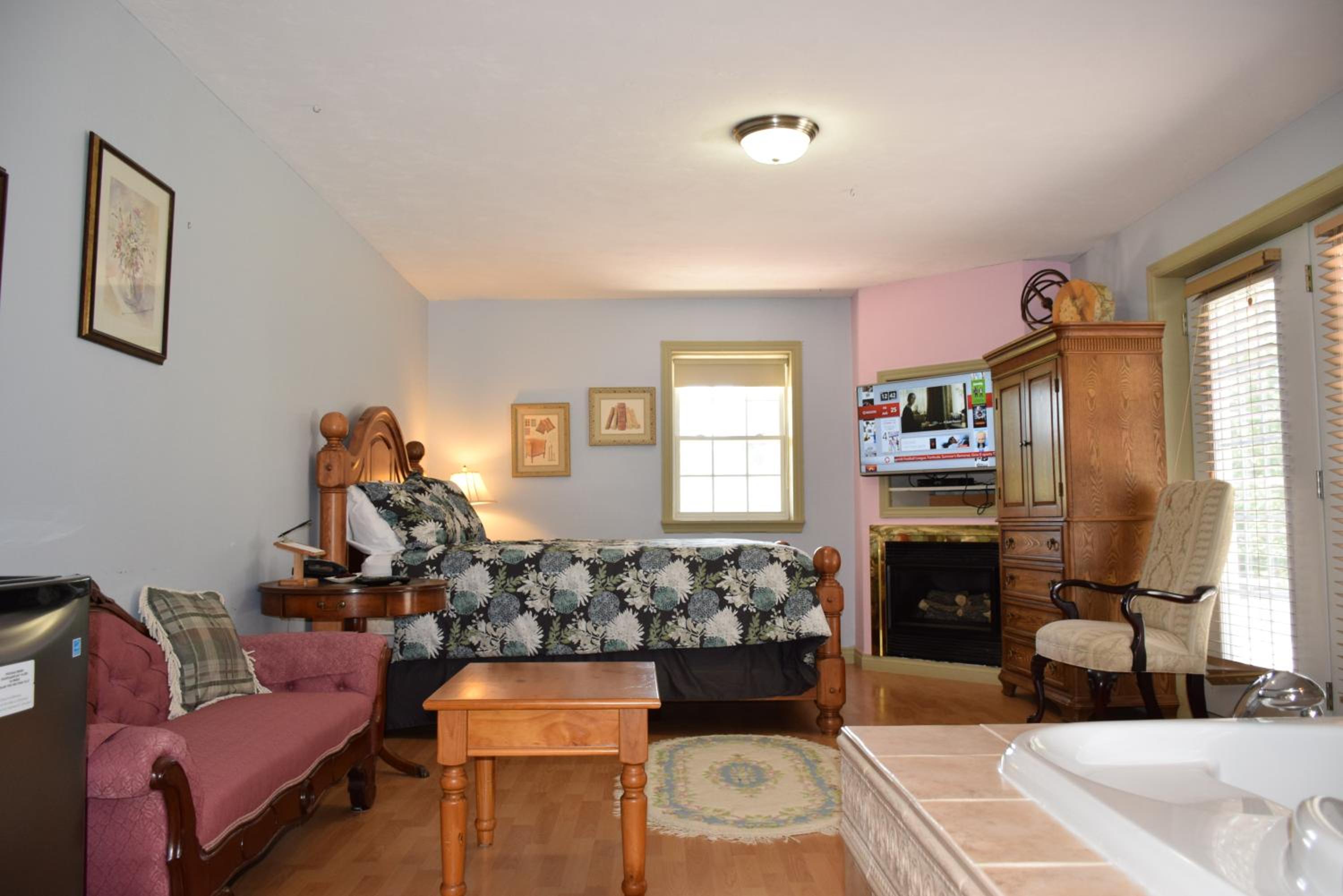 Experience comfort and style at Auberge Wild Rose Inn with spacious suites and studios, complete with flat-screen TVs and cozy seating areas. Upgrade to a suite with a balcony, spa bath, or fireplace for an extra touch of luxury.