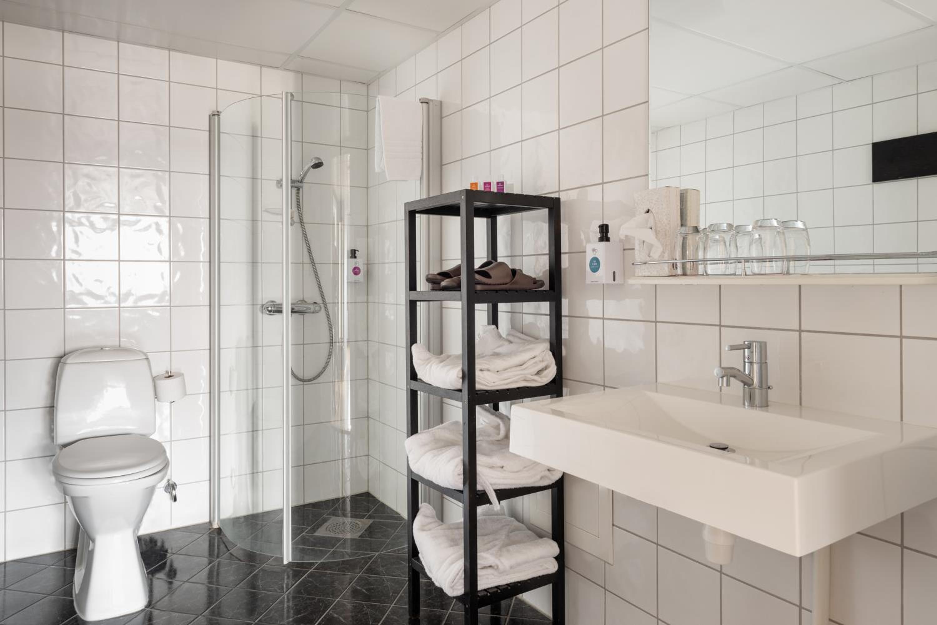 The bath was supposed to be open from 8 till 13 for hotel guests, but when we arrived at 9, they said we can stay until 10 only as they have baby swimming lessons till 13. The next day, Saturday the bath was closed and it turned out we needed a key from the reception to enter. There was no one working in the spa, they did not clean the place and the steam room was not switched on. Like only external paying guests were important who come after 13. While we had to pay 195 NOK per person per day to enter the spa as hotel guests. The room had no place tp put your clothes in, and the water from the shower came out, did not go down the drain.