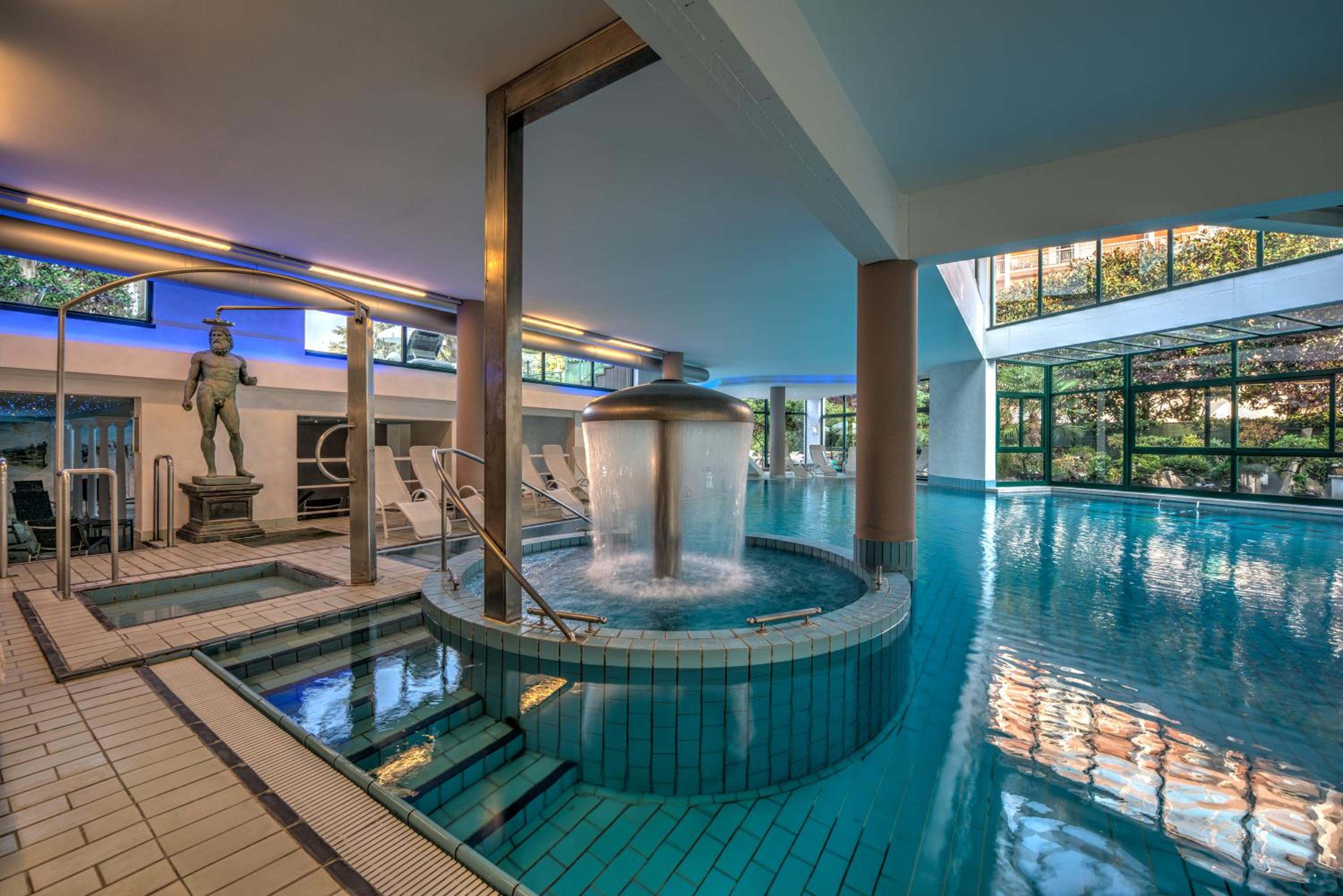 piscina calda ampia e comunicante con l'esterno. Personale gentile. Ottimo anche l'aperitivo offerto