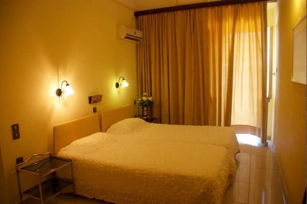 É um pouco peculiar falar deste hotel, primeiro a impressão que se em assim que desembarca nonoorto de agia marina é que a cidade está jagada as cobras , bem , não bem é assim , essa parte da ilha tem sim seus abandonos e lojas fechadas , hoteis falidos e muitos perdios abandonados , mas nada disso tira o encanto a o sossego desse vilarejo maravilhoso para descansar e passear , para os que procuram uma praia linda, limpa e dea águas quentes , é aqui !!! Sobre o hotel é o seguinte , precisa de uma reforma sim está velho e os banheiros são ruins , mas é limpo tem uma ótima internet e é pessoal é muito simpático ! E tem pelo preço não poderia esperar muita coisa , volto '