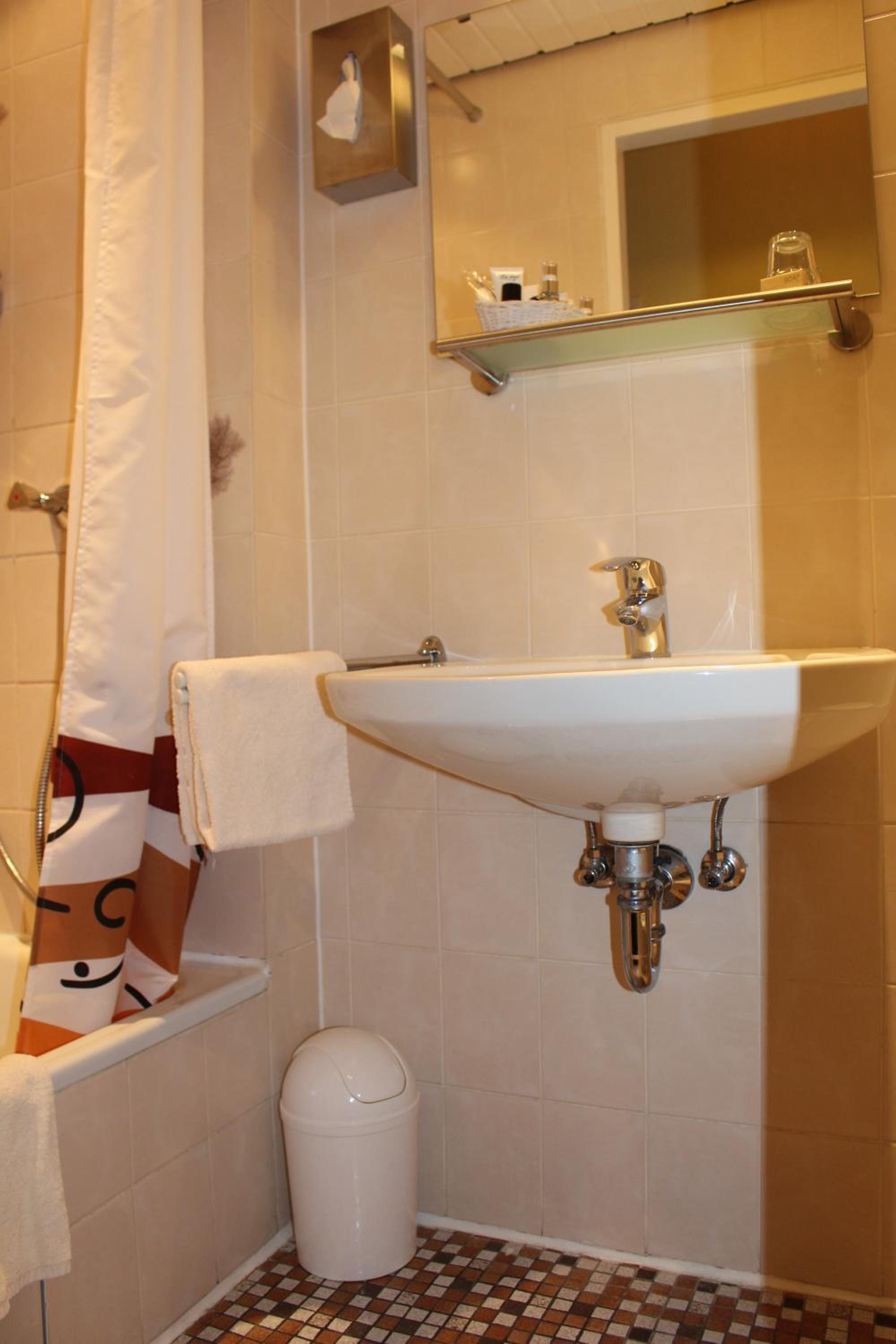 Unser „Familienzimmer“ befand sich in einem Nebengebäude. Unter unserem Zimmer die Garagen. Das Zimmer hatte nicht im entferntesten was mit vier! Sternen zu tun. Das Bad winzig klein. Die Möbel einfache Ausstattung.