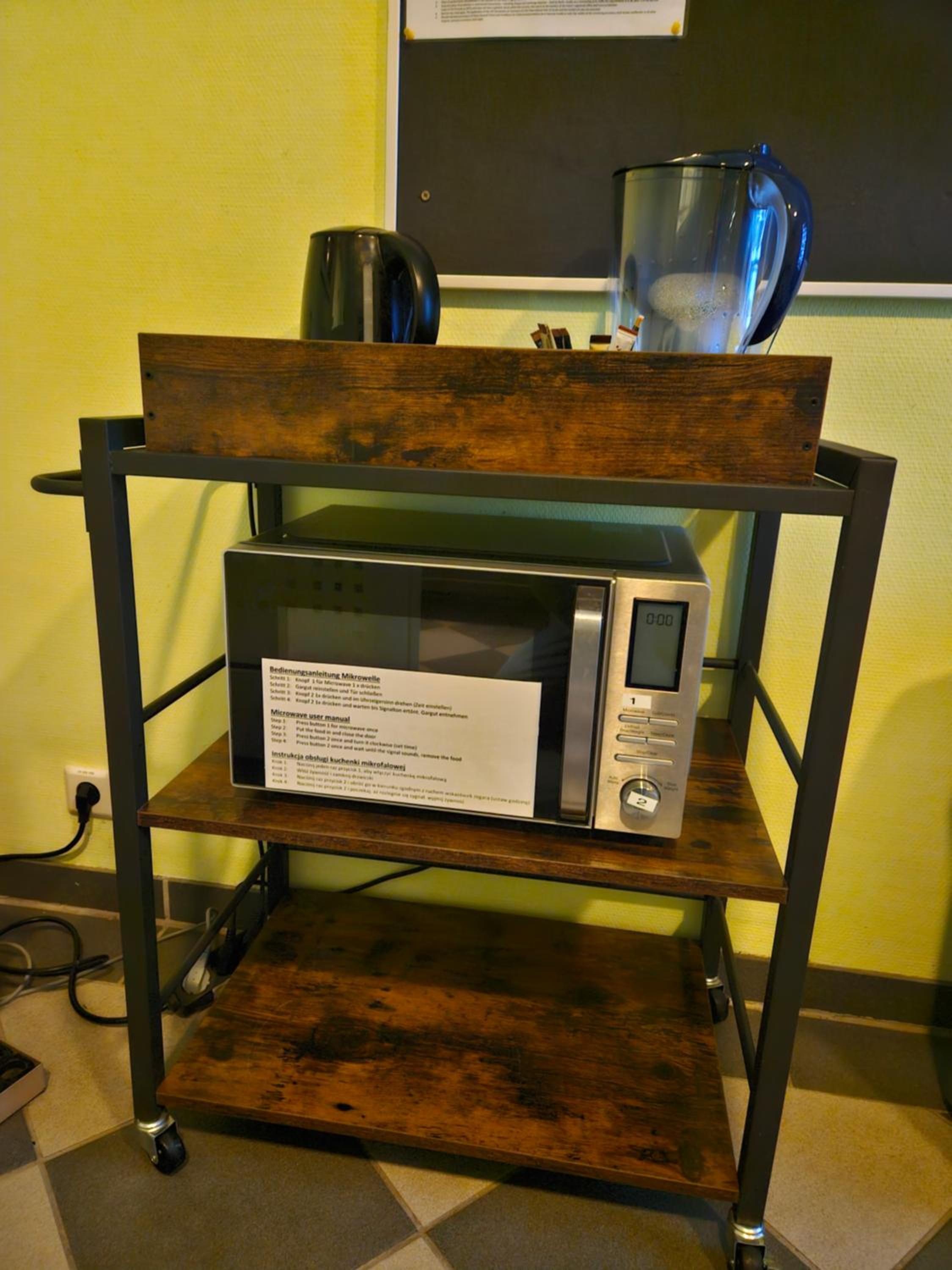 У кроватей нет розеток, они расположены на противоположной стене. Автомат с напитками и снэками принимает только наличные, при этом сдачу мне автомат не выдал. По выходным вечером в отеле не работает кафе, но недалеко есть заправка, можно поесть там. Было бы классно иметь чайник в номере или куллер с водой в местах общего пользования. Микроволновка в местах общего пользования тоже была бы плюсом.