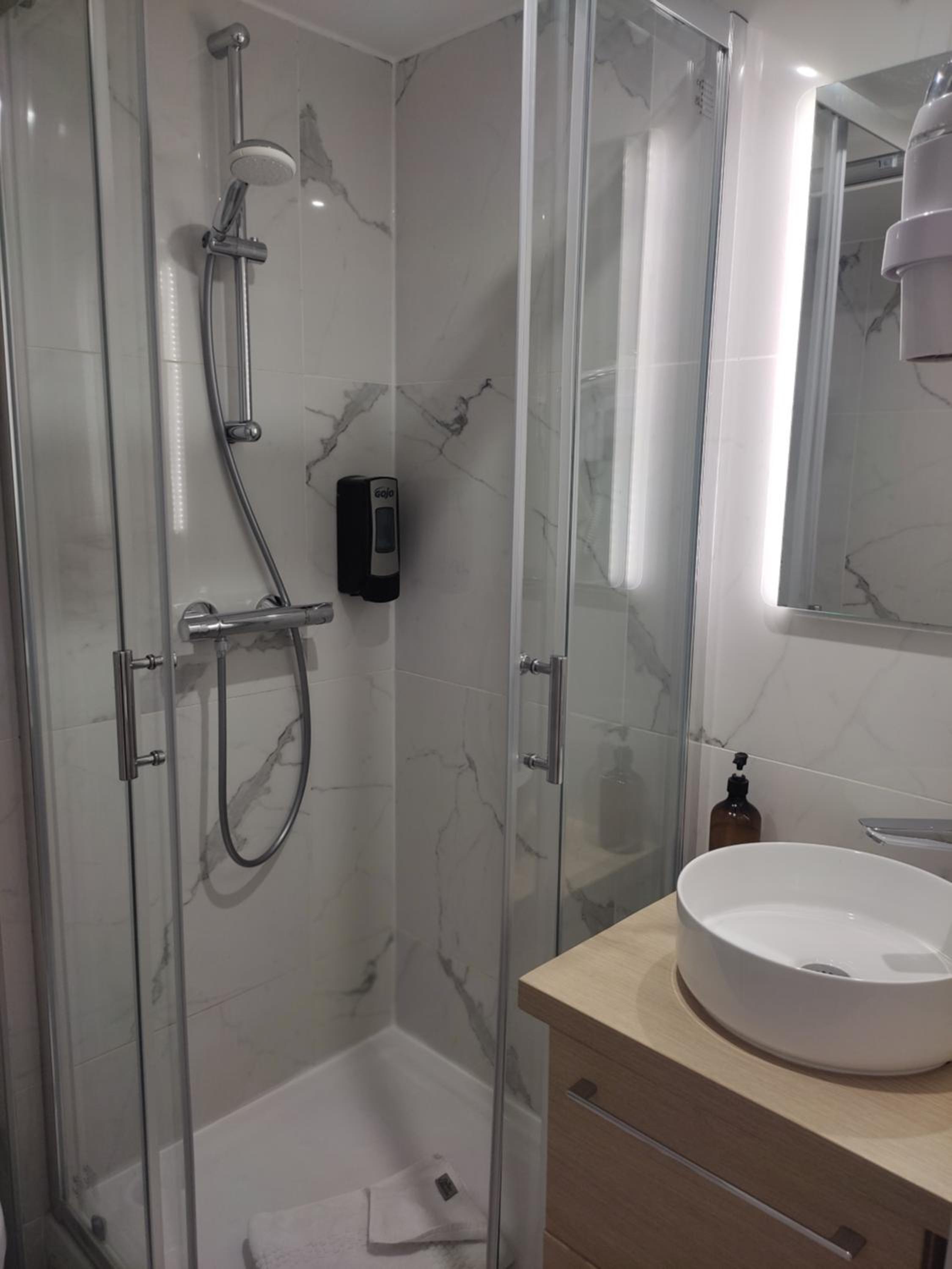 stanza pulita e doccia spaziosa