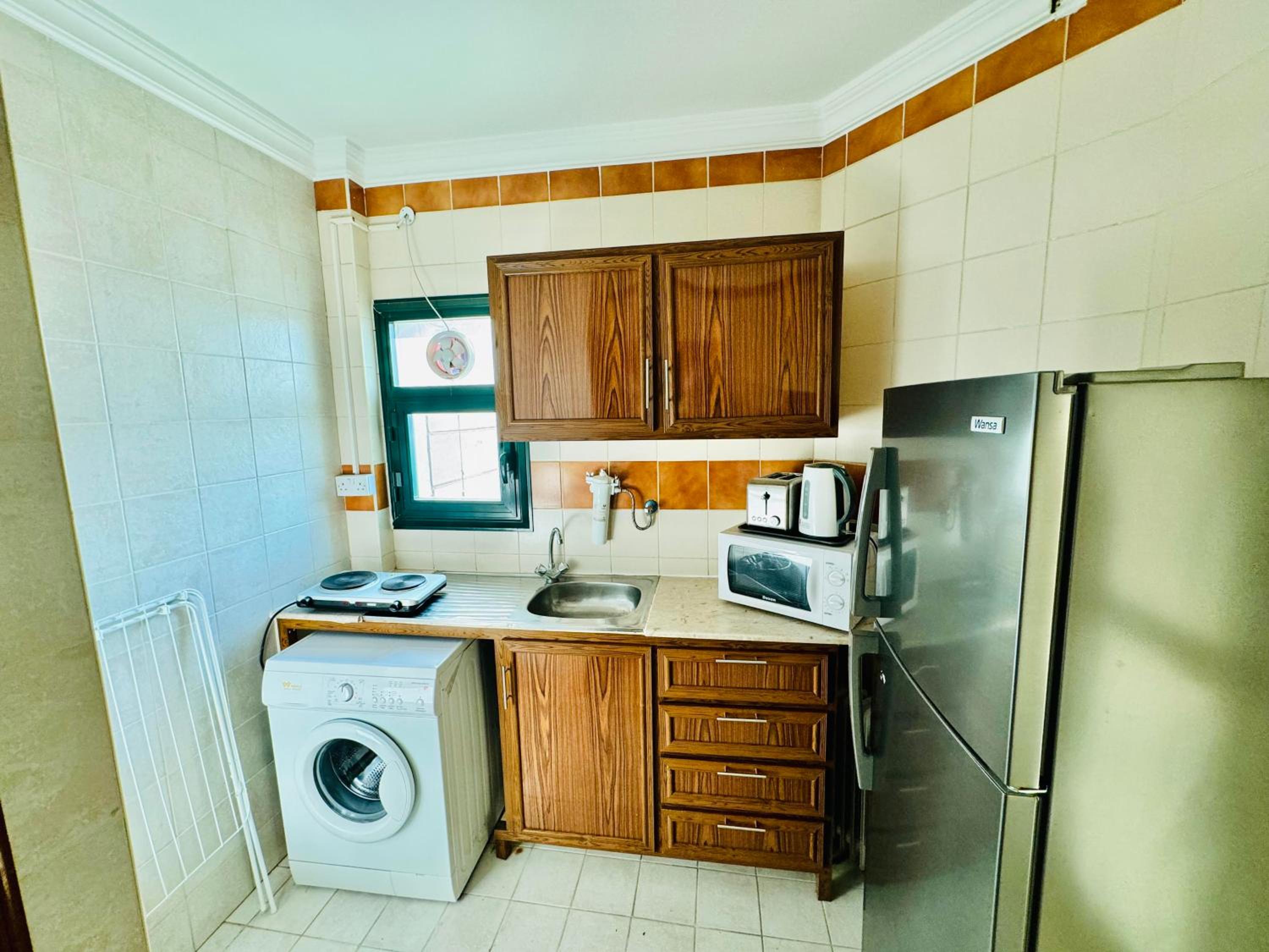 Strategically located in the vibrant Hawally district, enjoy proximity to cultural landmarks like Kuwait University and stunning views from Liberation Tower, all just a short drive away.