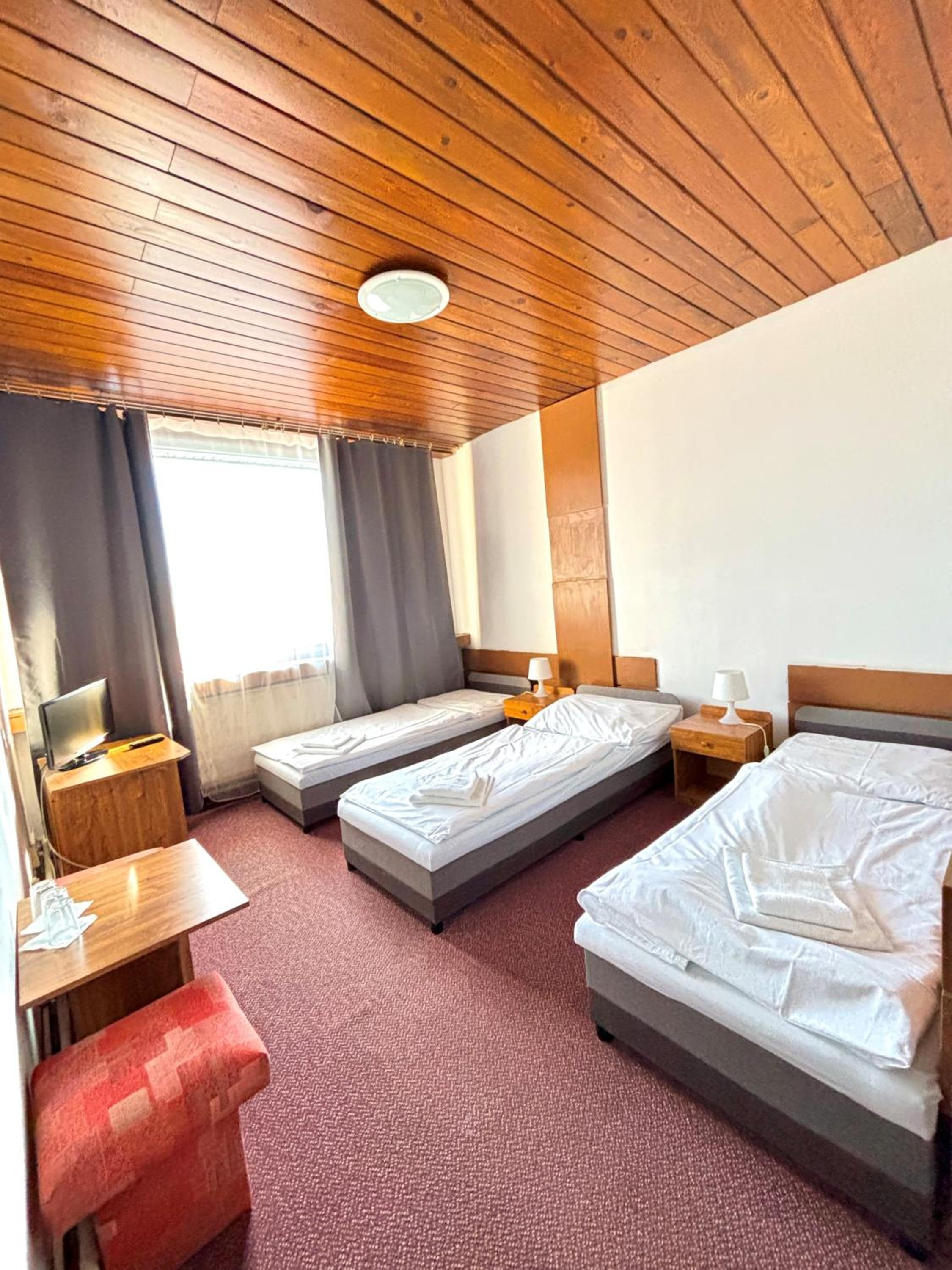 Dá sa povedať, že sa nimi vykompenzovali iné nedostatky. Na prespatie na jednu noc to pre nenáročných stačí. Izba v podstate čistá až na opotrebovanú flakatú stenu. Proste sa prenesiete v čase a je to také retro.