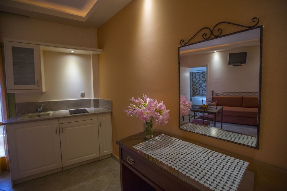 A clean hotel with a quiet architecture. Our room was specious with a small kitchenette.The staff was nice and friendly. Very close to the Kamari beach! Worth the money!