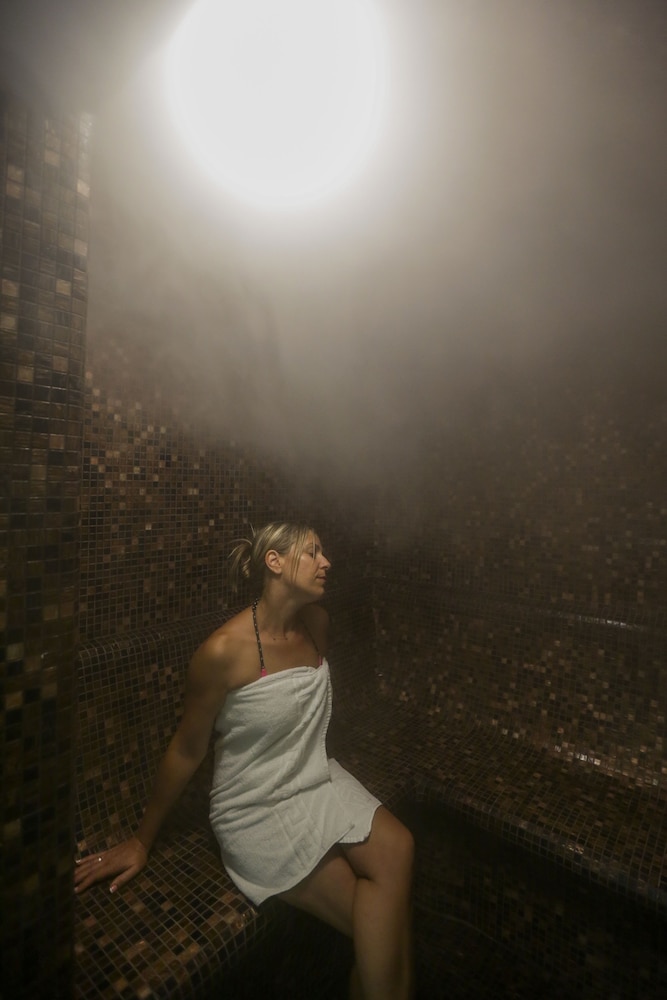 Enjoy the outdoor pool, spa tub, and sauna for relaxation and rejuvenation.