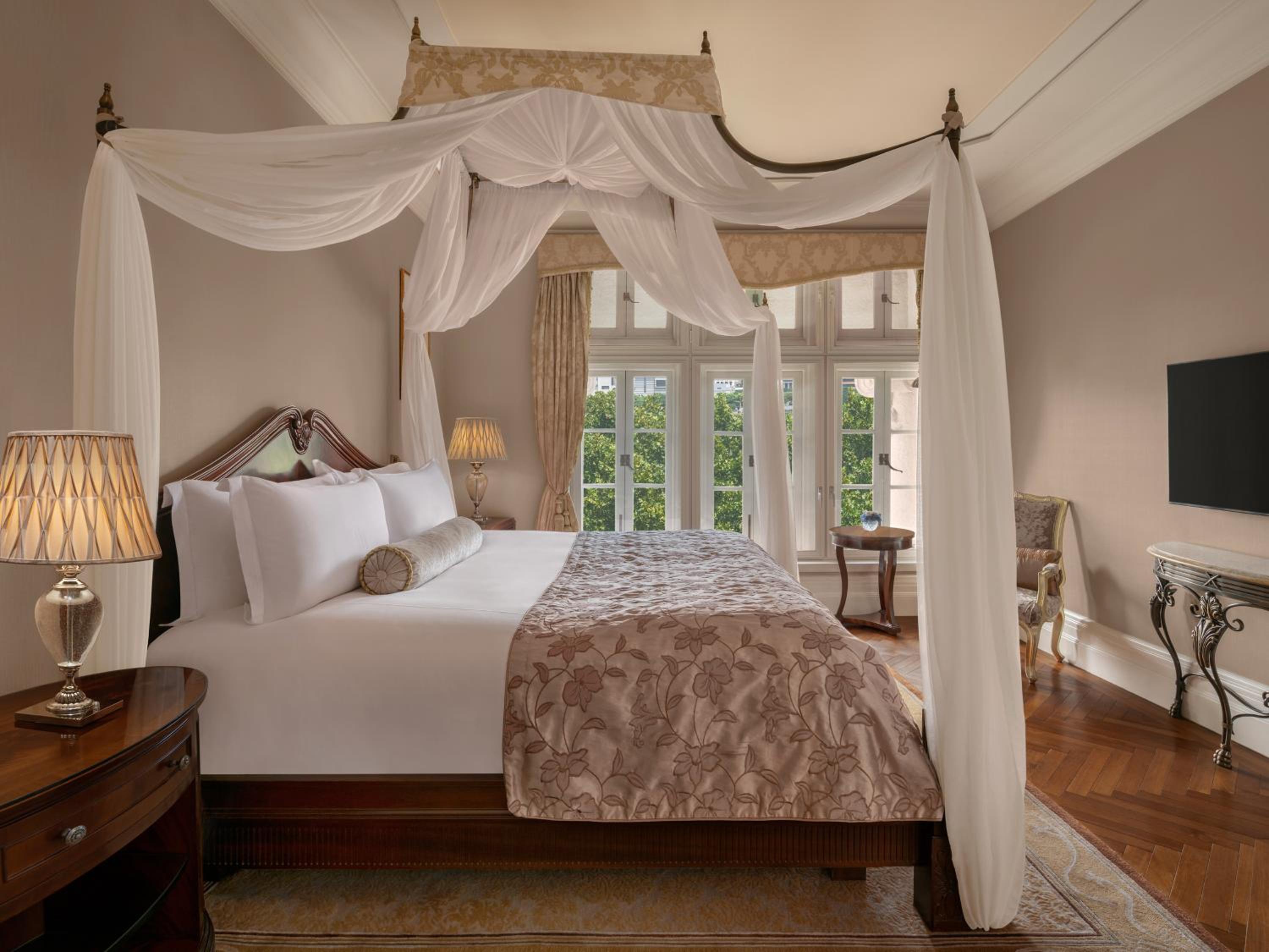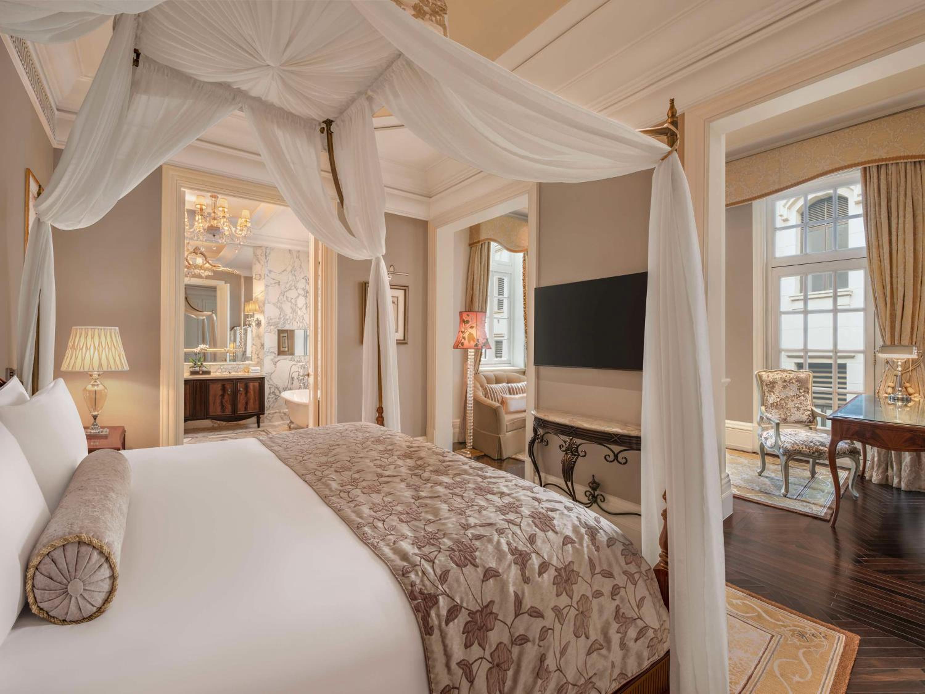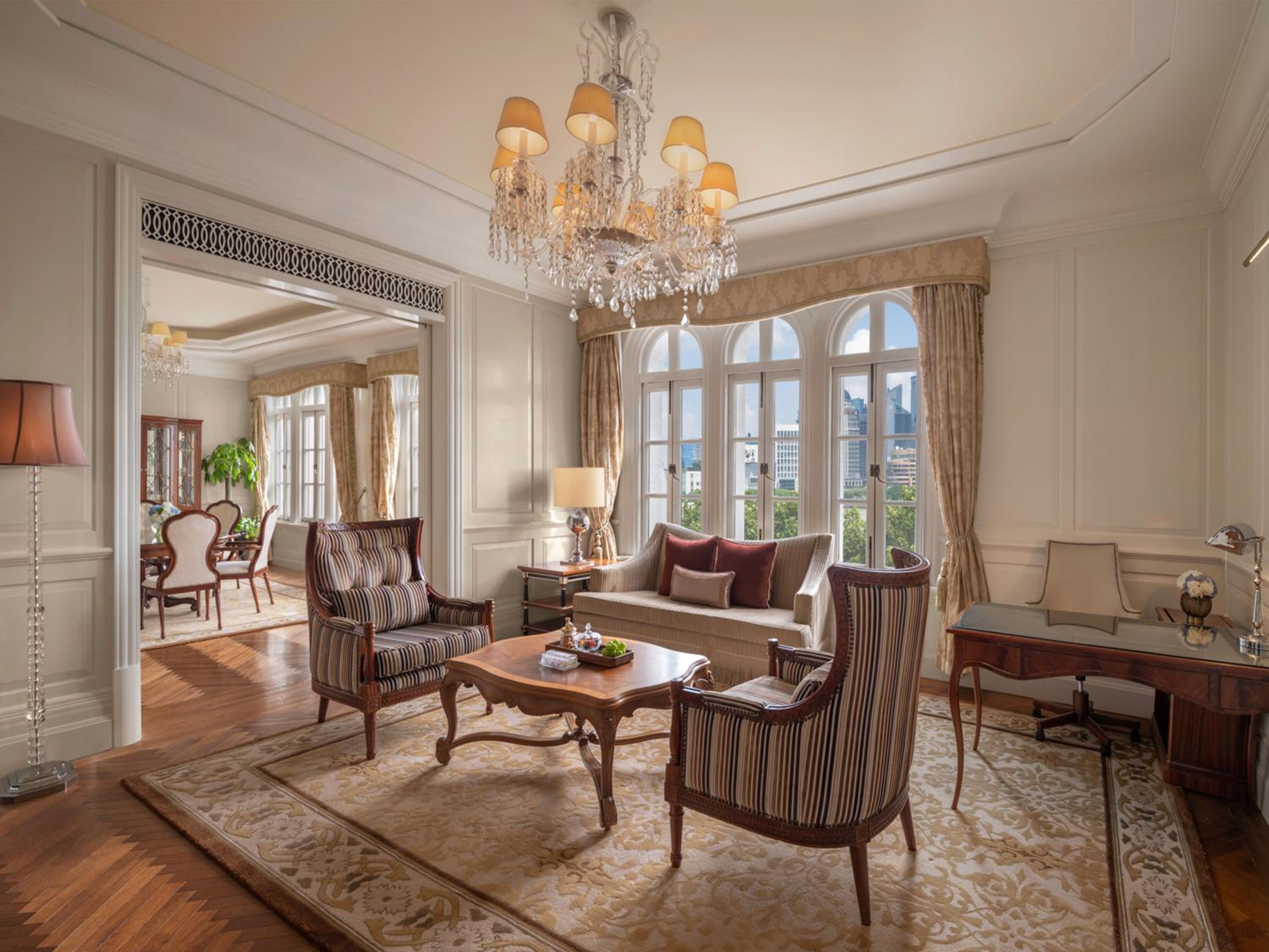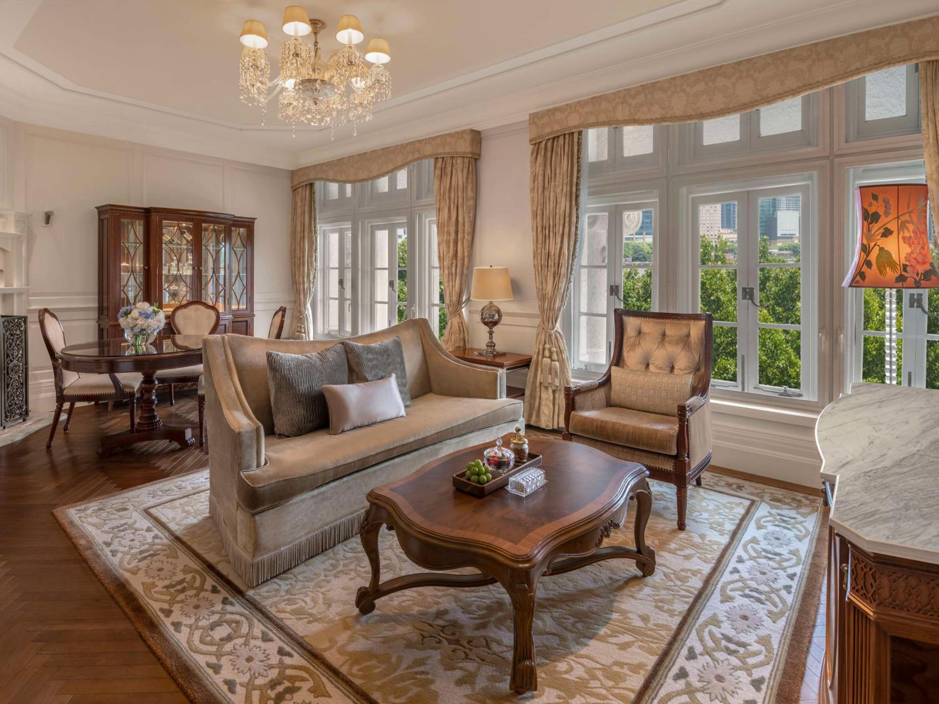 Satisfy your culinary cravings at Pelham's for modern French cuisine or Wei Jing Ge for authentic regional Chinese dishes. The iconic Long Bar offers breathtaking river views and an extensive drinks menu for a memorable dining experience.