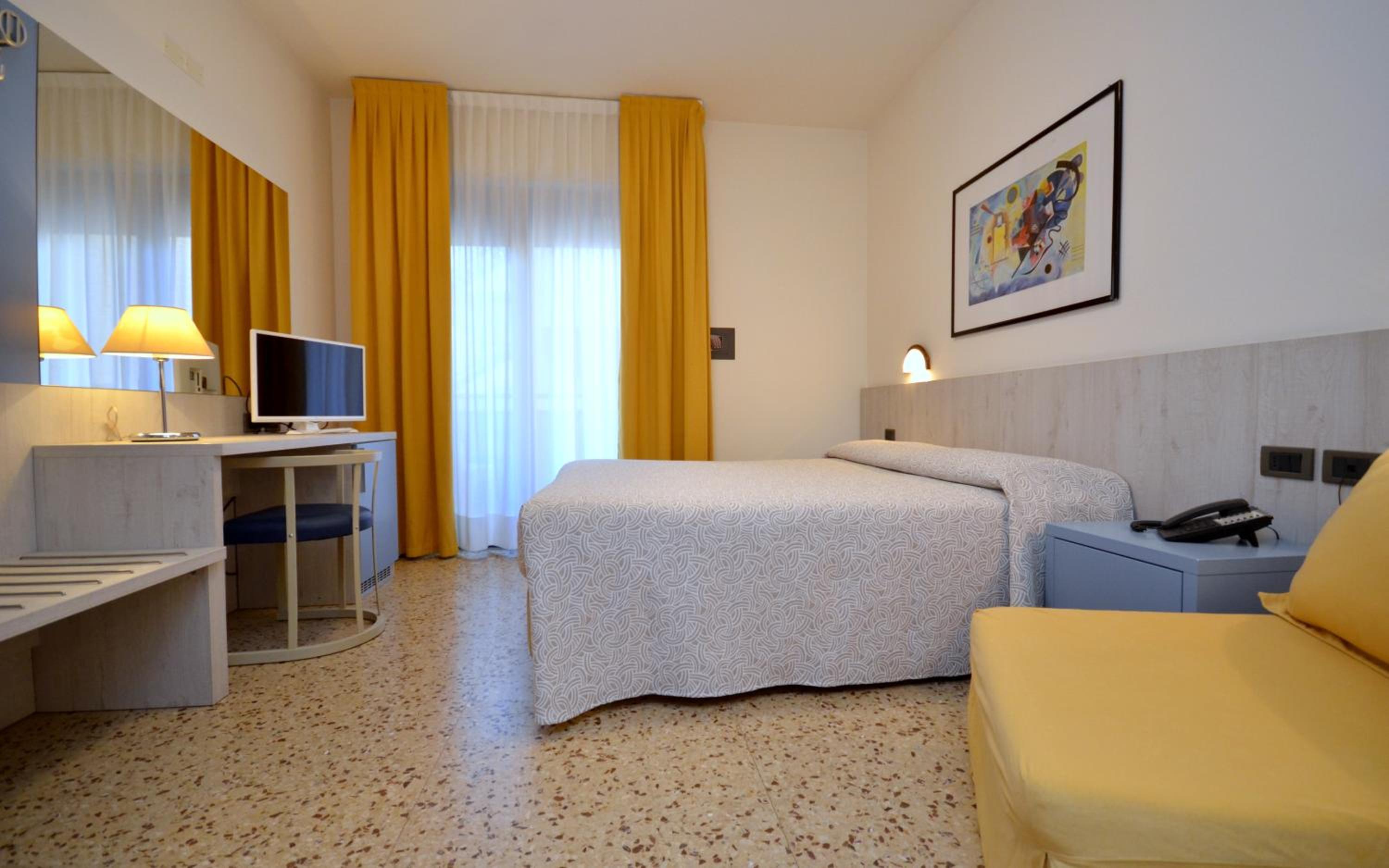 Experience air-conditioned rooms with balconies, TVs, and private bathrooms, or upgrade to an apartment with a fully equipped kitchenette at Bibione's Olimpia Hotel & Aparthotel.