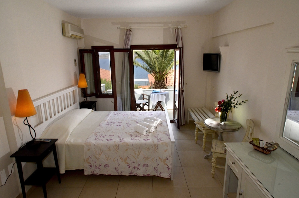 Our stay at this hotel far exceeded our expectations. The staff and the property were wonderful. The location, although an hour from the port and the airport, was well worth it, as it was close to Molivos and Petra. We could not have asked for a better location. We had drinks, breakfast, dinner and snacks at the hotel and we can say that they were very well prepared and delicious. The rooms were not luxurious, but very adequate for a vacation near the sea. We will definitely return!