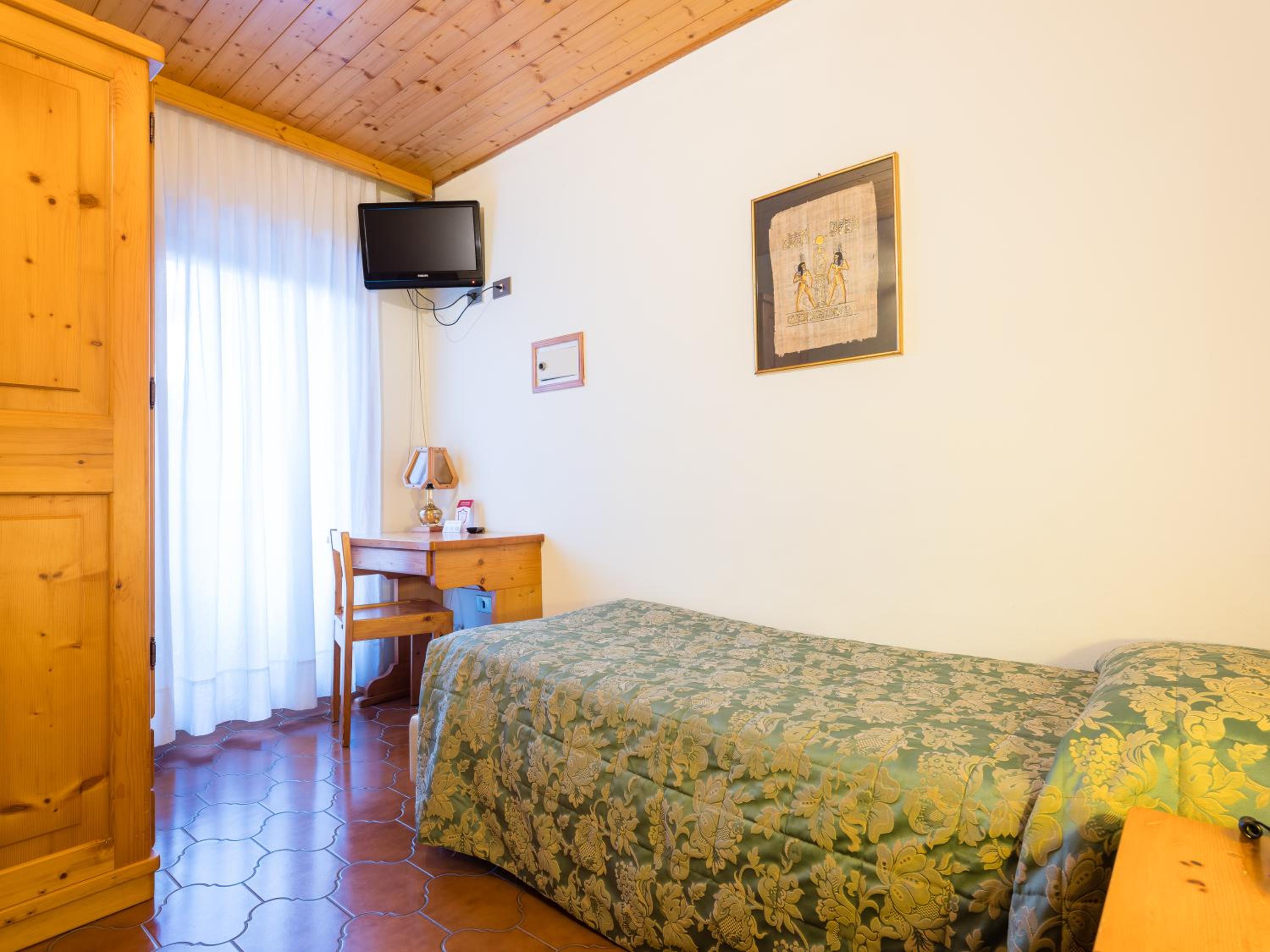 Staff gentilissimo e disponibile in reception e ristorante. Parcheggio all'aperto riservato e gratuito a meno di 50 metri dalla struttura. Camera, letti e bagno comodi, puliti magari un pò spartani. Cene ottime in albergo a prezzo vantaggioso per i clienti. Colazione varia e completa (cornetti-torte altri dolci, bacon, uova, wurstel, frutta, caffetteria, spremute, succhi, yogurt etc..). Bar interno alla struttura; in paese c'è molto poco per chi vuole un drink dopo cena. Struttura wellness con sauna, bagno turco, area relax e piscina con indromassaggio molto piacevole dopo lo sci. Biliardo e biliardino liberi. Deposito sci/scarponi riscaldato a disposizione. Lo skybus ferma davanti all'albergo ed in 5 minuti si arriva a Daolasa (per M.di Campiglio e Folgarida meglio l'auto). Albergo sicuramente consigliato, ottimo rapporto qualità/prezzo.