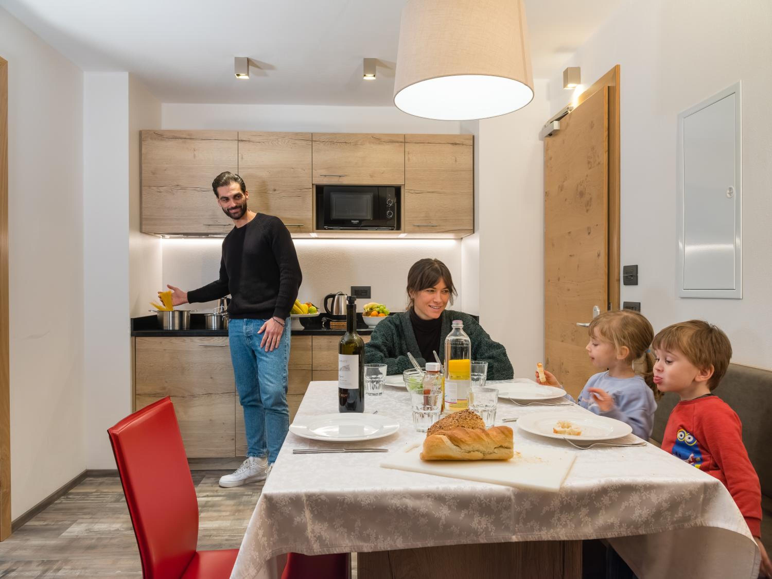 Идеальное местоположение, близко до подъемников Marileva и до подъемников Folgarida, есть станция электрички, можно добраться на поезде, есть собственная большая парковка рядом с отелем. Комната для лыж оборудована отдельно, но это не критично.