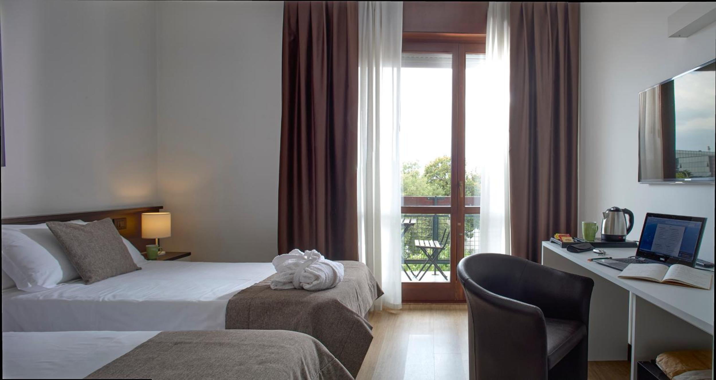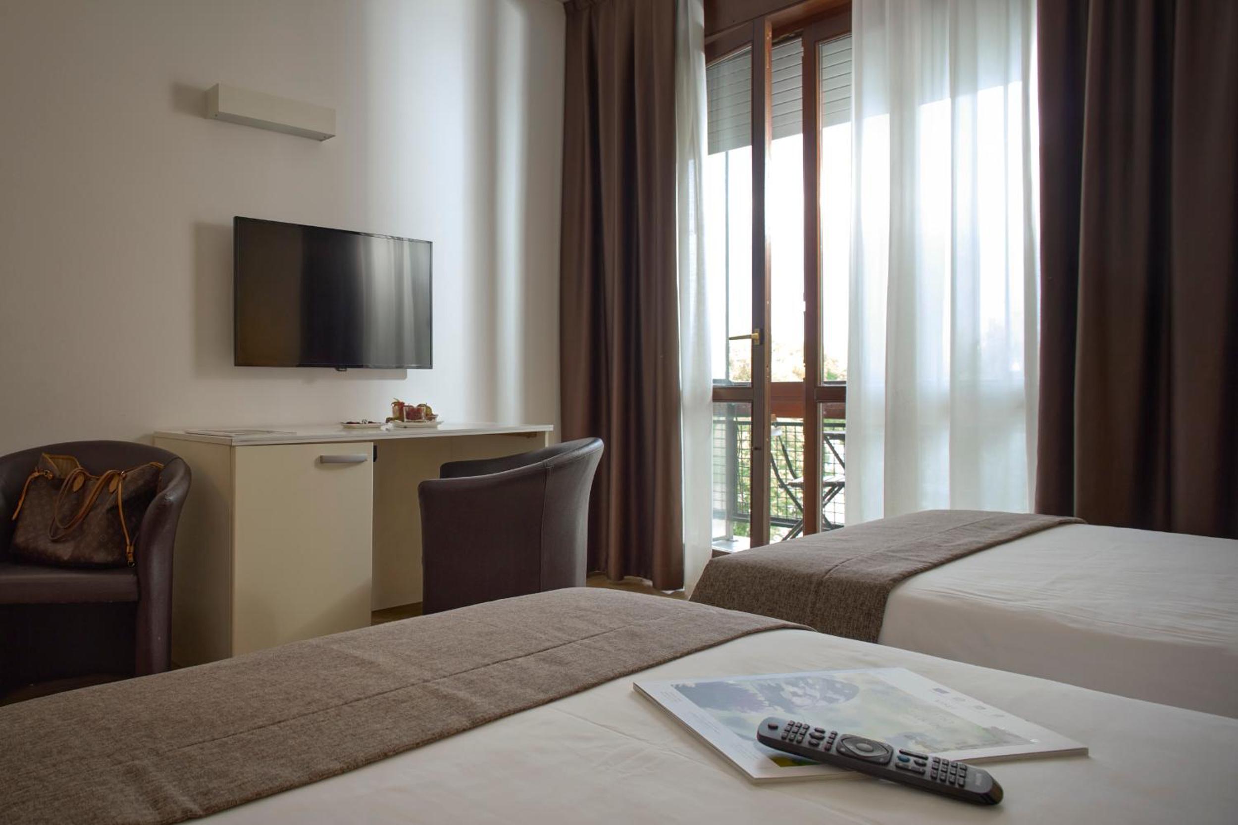 Hotel Eurorest provides modern rooms with complimentary WiFi and free parking for the convenience of guests. The rooms are spacious and well-equipped, featuring amenities such as a minibar and an LCD TV with satellite channels. Some rooms even offer a balcony for a relaxing outdoor space.