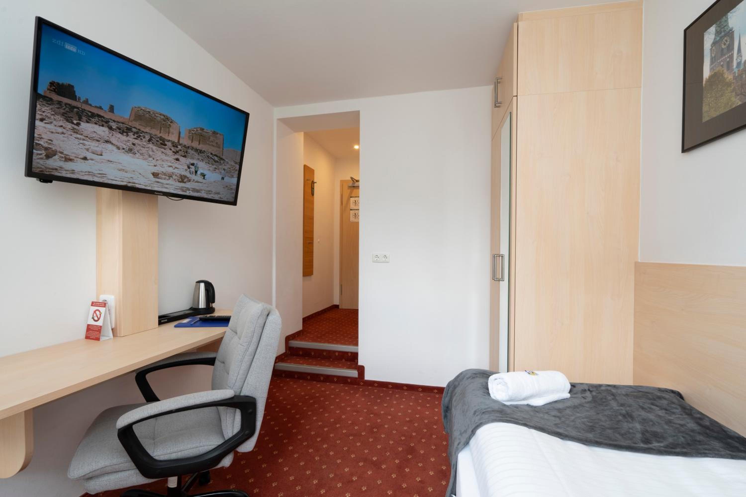 Die Lage des Hotels ist sehr gut. Der Hauptbahnhof ist fußläufig in 2 Minuten erreichbar und zur historischen Altstadt benötigt man knapp 10 Minuten. Der Großraumparkplatz MuK ist auch in 10 Minuten erreichbar.