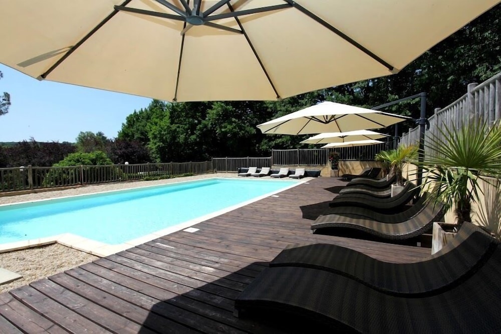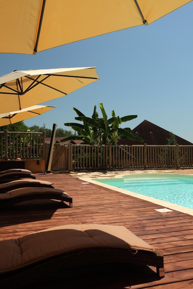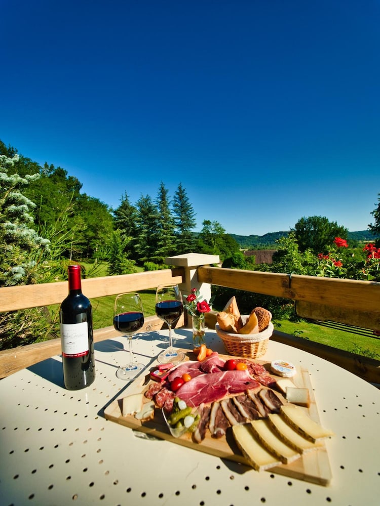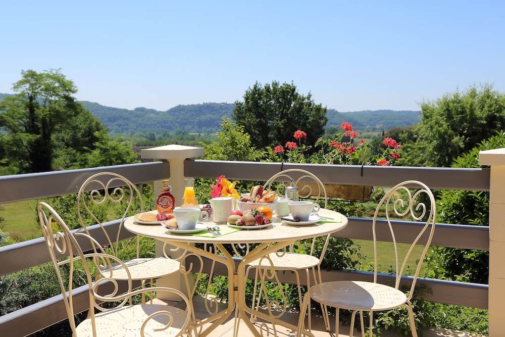 Un accueil charmant et tres attentionné. Tres calme, dans un cadre magnifique, une belle piscine. .possibilité d'utiliser des tables de pique nique dehors pour diner. Bar sur place avec une tres belle vue, dommage on l'a su trop tard. Nous ne dejeunons pas, donc pas d'avis dessus, Bien placé a 5mn de la Roque Gageac et 20mn de Sarlat. On reviendra avec plaisir,