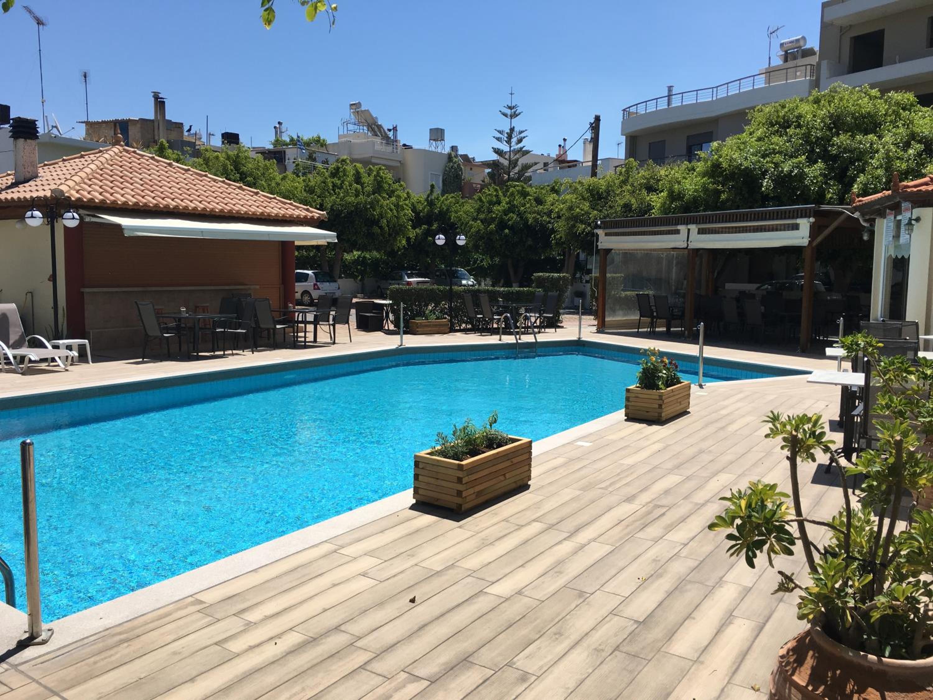 Unwind by the seasonal outdoor pool or venture out to explore the rich history and culinary delights of Heraklion.