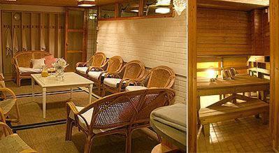 Guests can unwind in the hotel's complimentary sauna, available on weekdays and by agreement on weekends. The spacious sauna hall is well-equipped with seating, towels, and a fridge for drinks.