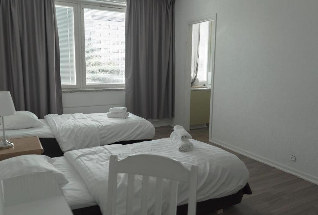 Huone viileähkö näin syysaikaan jo (elohopea mittari ei toiminut joten en osaa sanoa asteita) oli kuitenkin lämpimänpi kuin edellisenä vuonna jolloin huoneessa oli 12 astetta, tuolloin tosin huone vaihdettiin kyllä. Huoneessa ilmalämpöpumppu mutta säädetty niin että ainoastaan viilennys toimii. Huoneet alkaa olla kulahtaineta, tapetit repsottaa, kaihtimet toimii osittain, kylpyhuoneen oven karmit jo viime vuonna ilmeisesti raavittu auki mutta ei vieläkään maalattu. Vedenkeitin ja mikro käytävällä ei kuitenkaan esim tee tai kahvipusseja huoneissa. Hinta laatusuhde ei kohtaa.